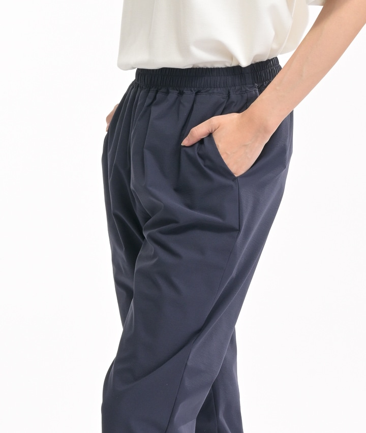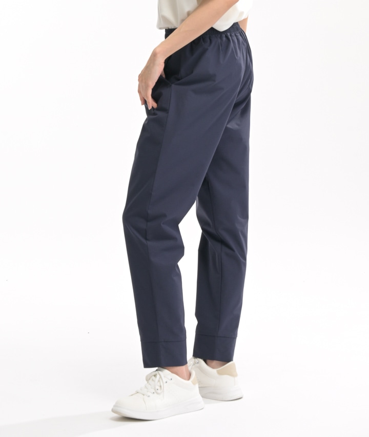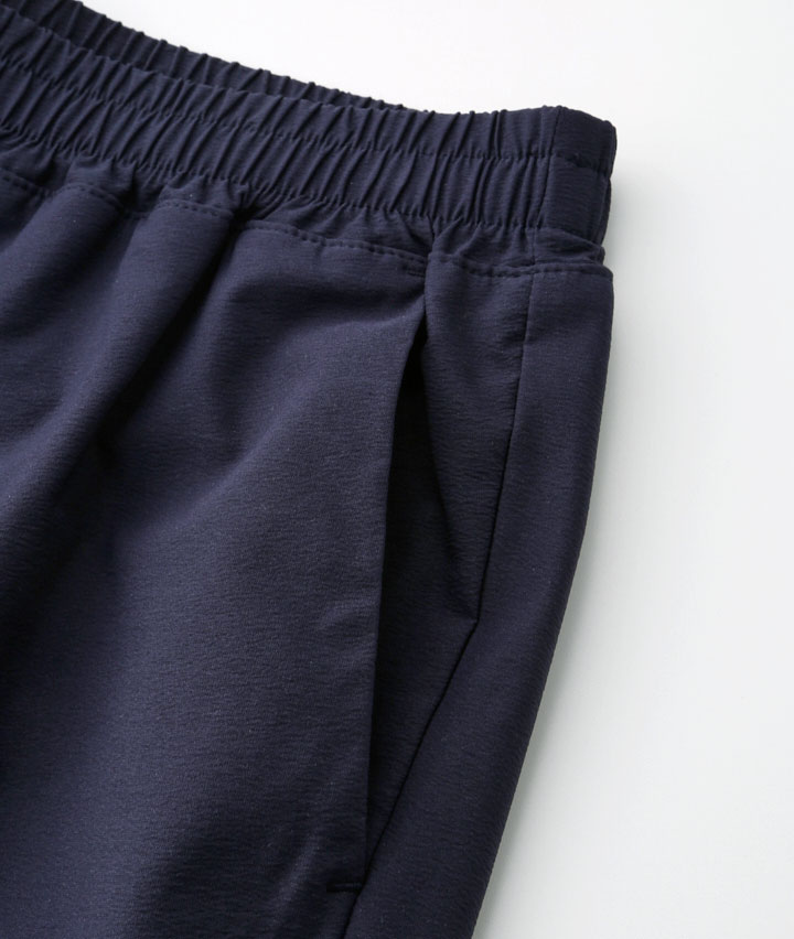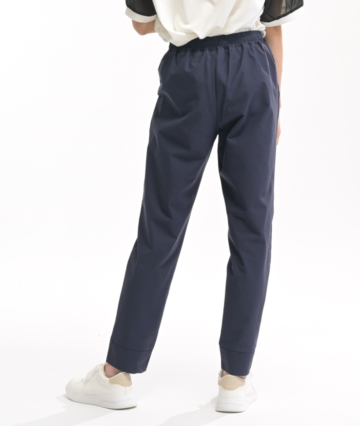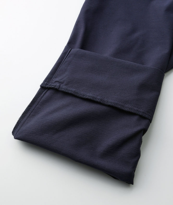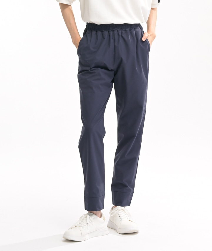 ・2wayストレッチ素材、ハイパーヘリックスを使用したジョガーパンツ。しなやかなストレッチ性で履きやすく動きやすい。大きめのメッシュポケットは携帯電話を入れても安心です。後ろ側の深い股上は、運動時にしゃがんでも安心。