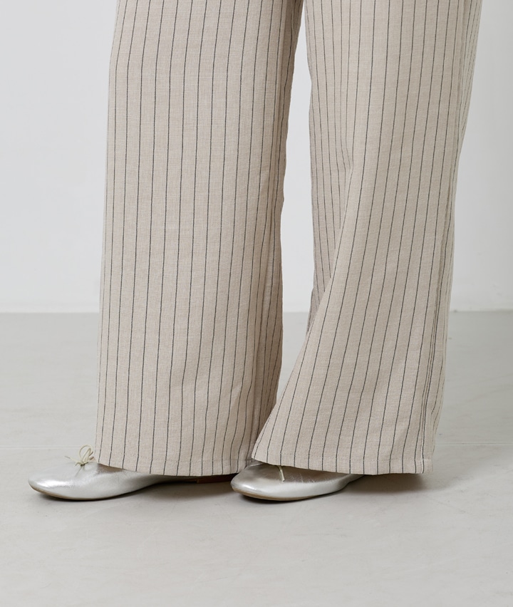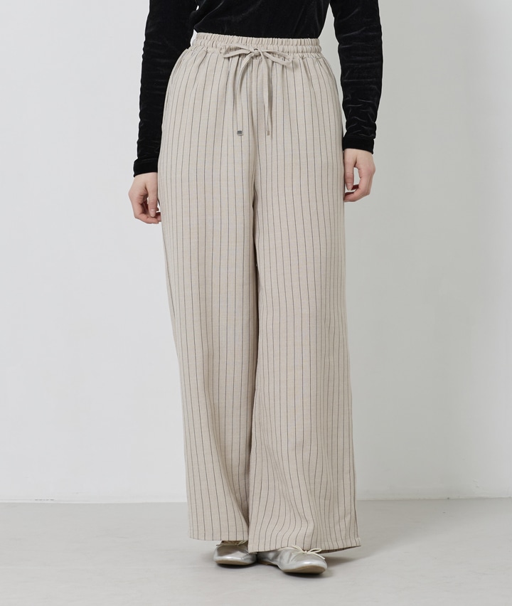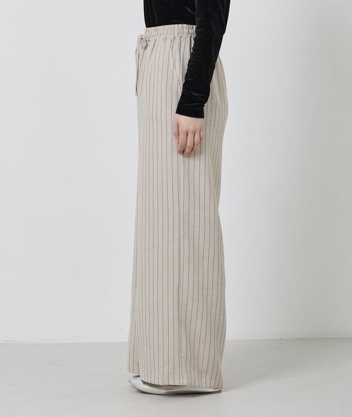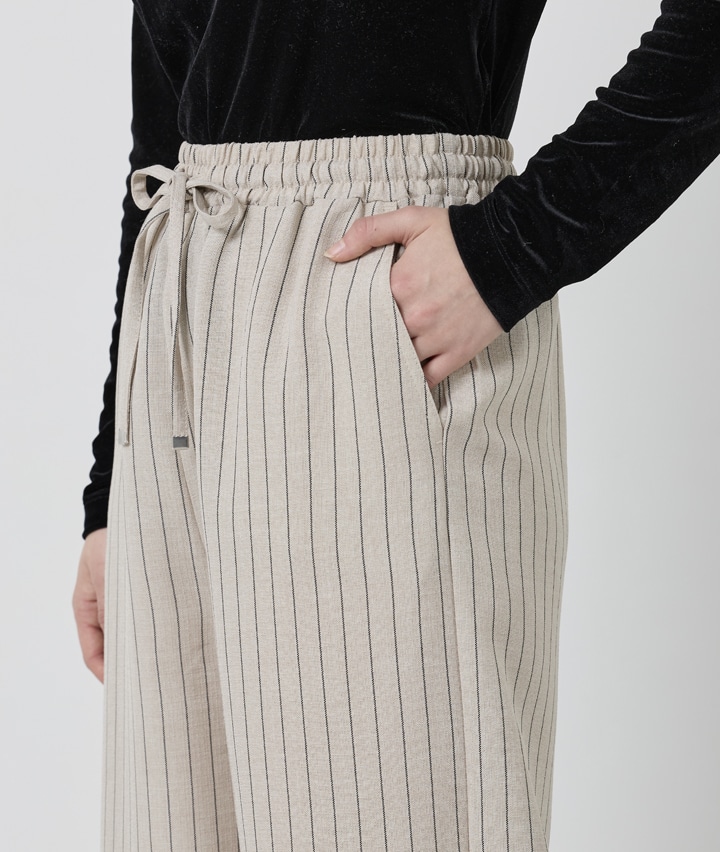 ・ウエストドロストで履きやすいパンツです。ストライプで細みえするパンツです。