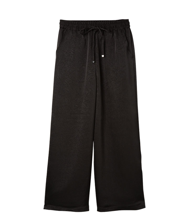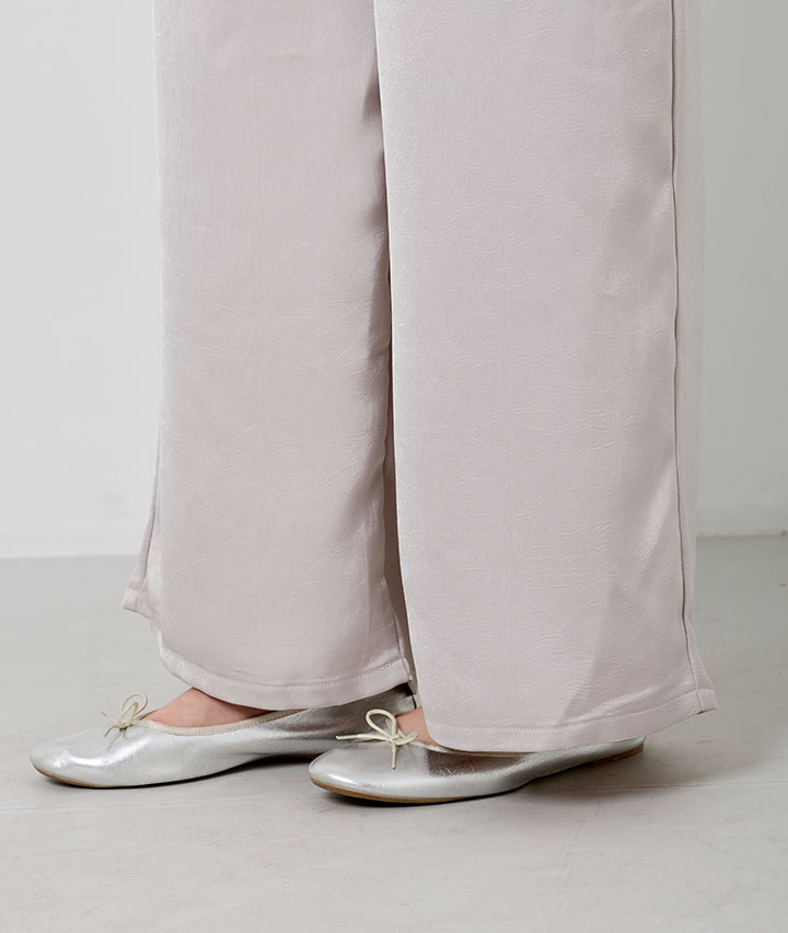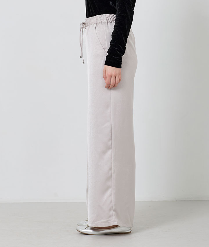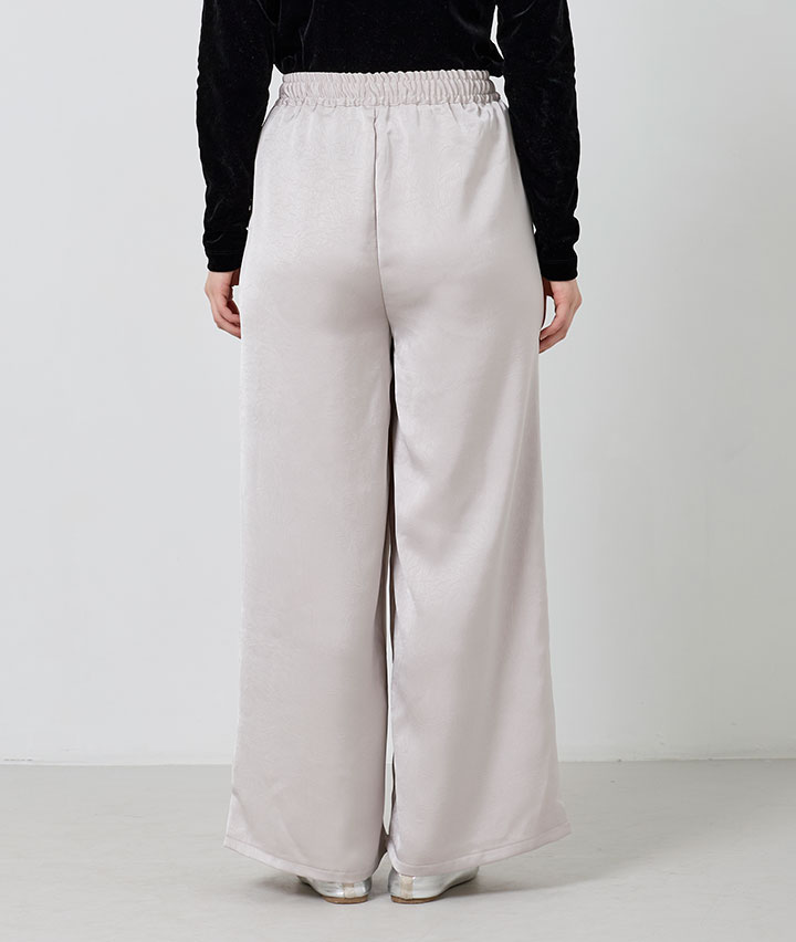 ・ヴィンテージ調の表面変化のあるサテン生地です。ウエストゴムでリラックスして着用して頂けます。