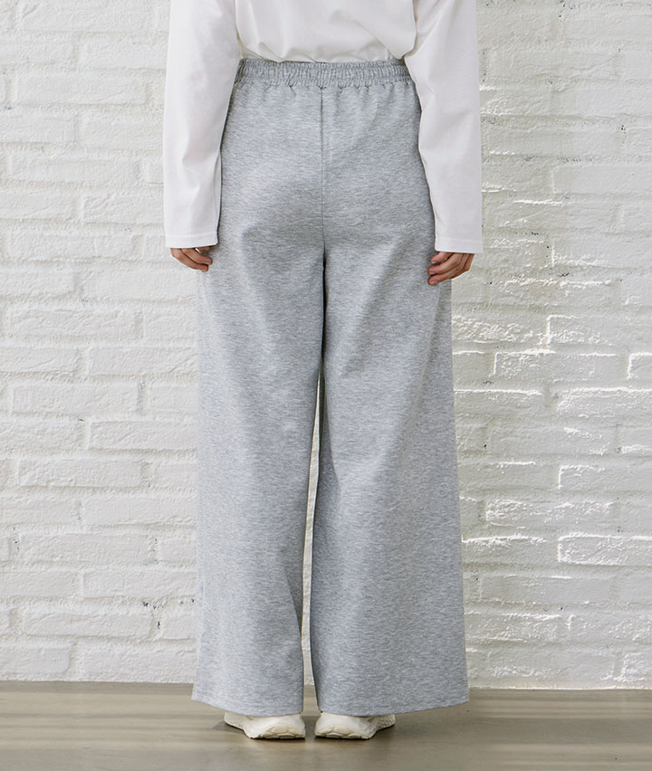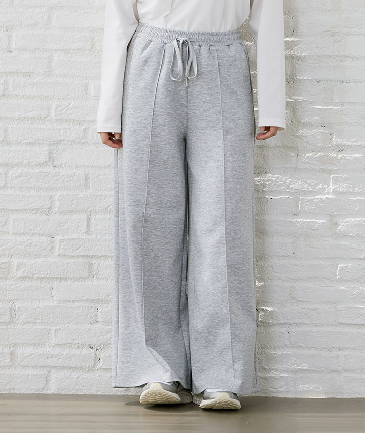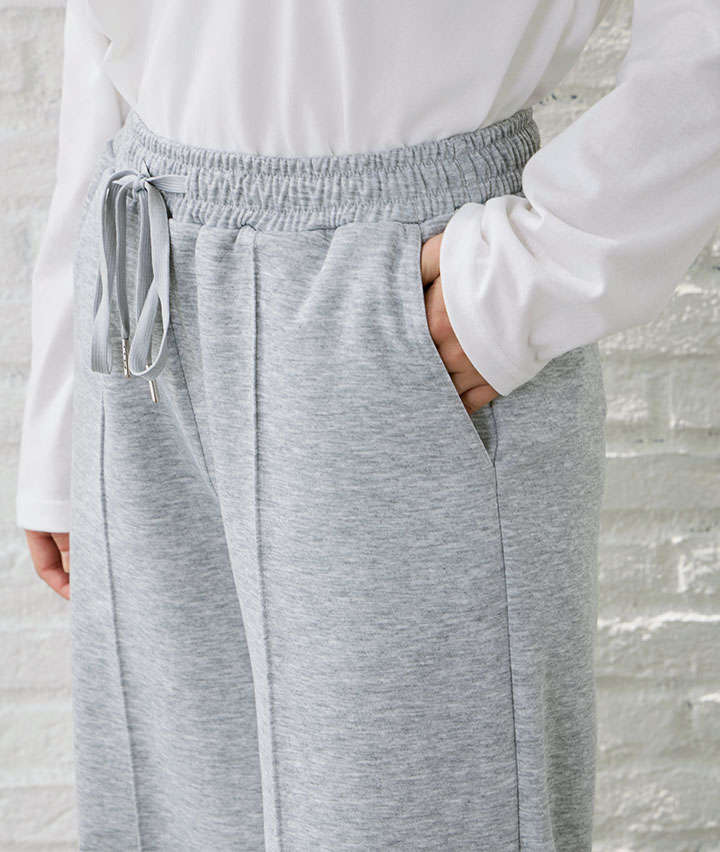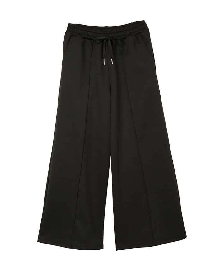 ・今年トレンドのダンボールパンツ。センタープレス入りで細みえ効果あり。