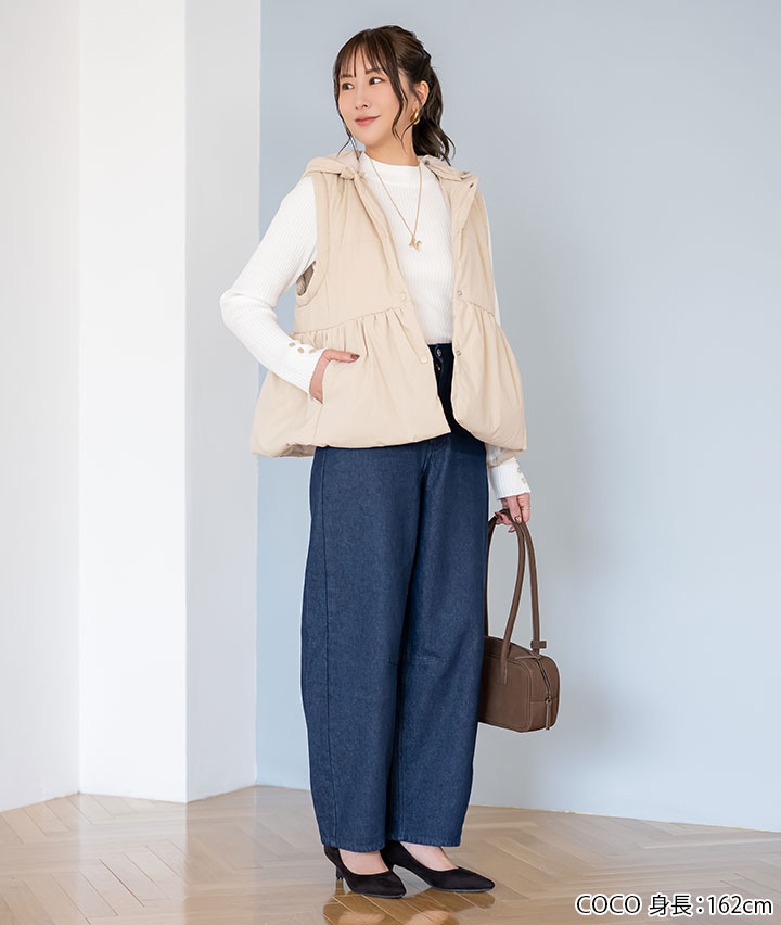 ・体系を選ばないカーブパンツは今っぽいシルエットのデニムパンツで裏起毛仕様で暖か味のある素材を使用しています。