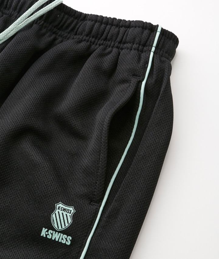 ・K・SWISSブランドのパンツ。軽量でストレッチ性のあるブリスター生地を使用。ウエストゴムシャーリング仕様で楽々フィット。