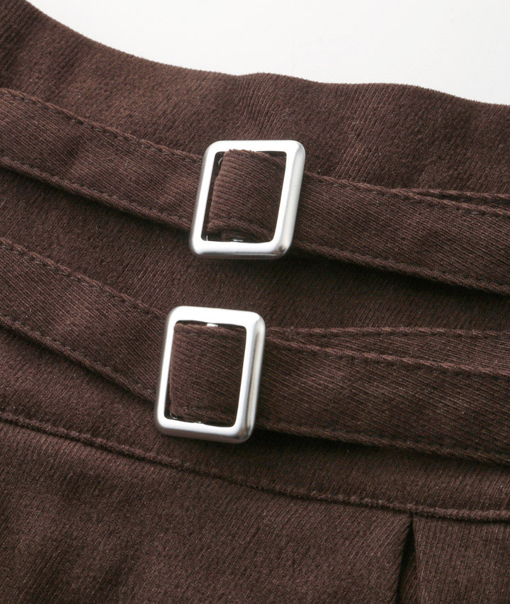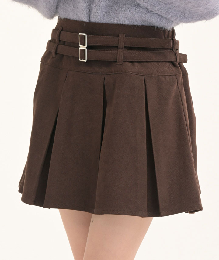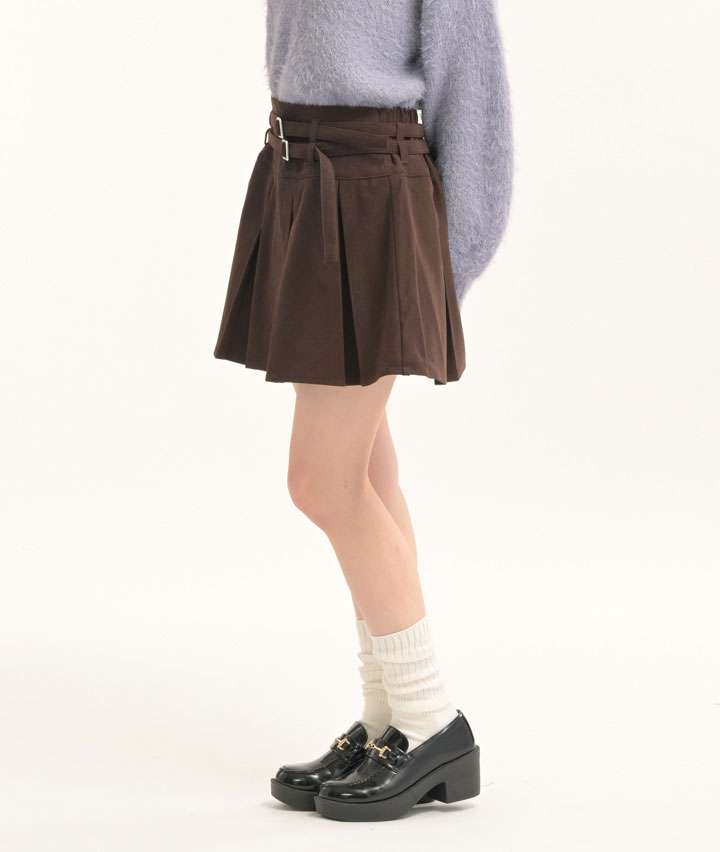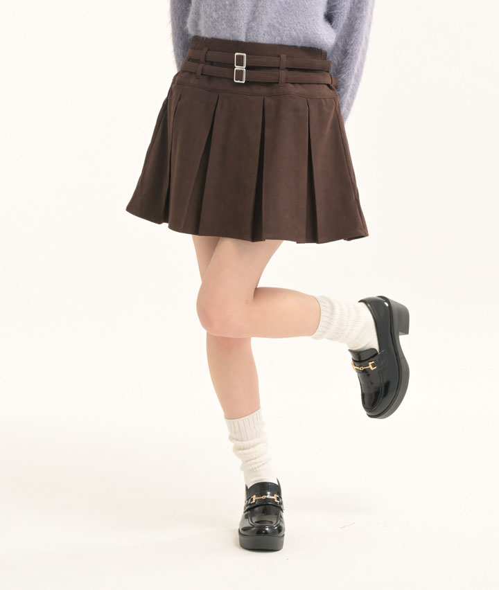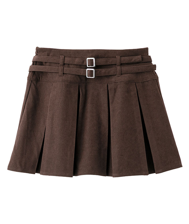 ・ダブルベルト仕様の起毛プリーツスカート。