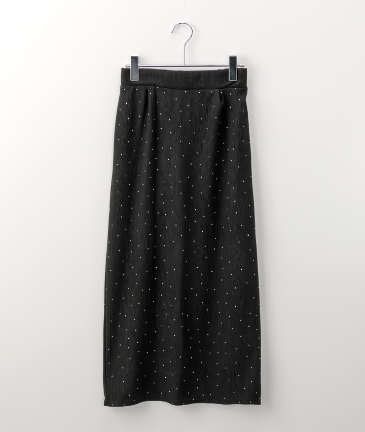 ・キラキラとしたビジュー使いのナロースカート。ウエストゴムも嬉しいポイントです。