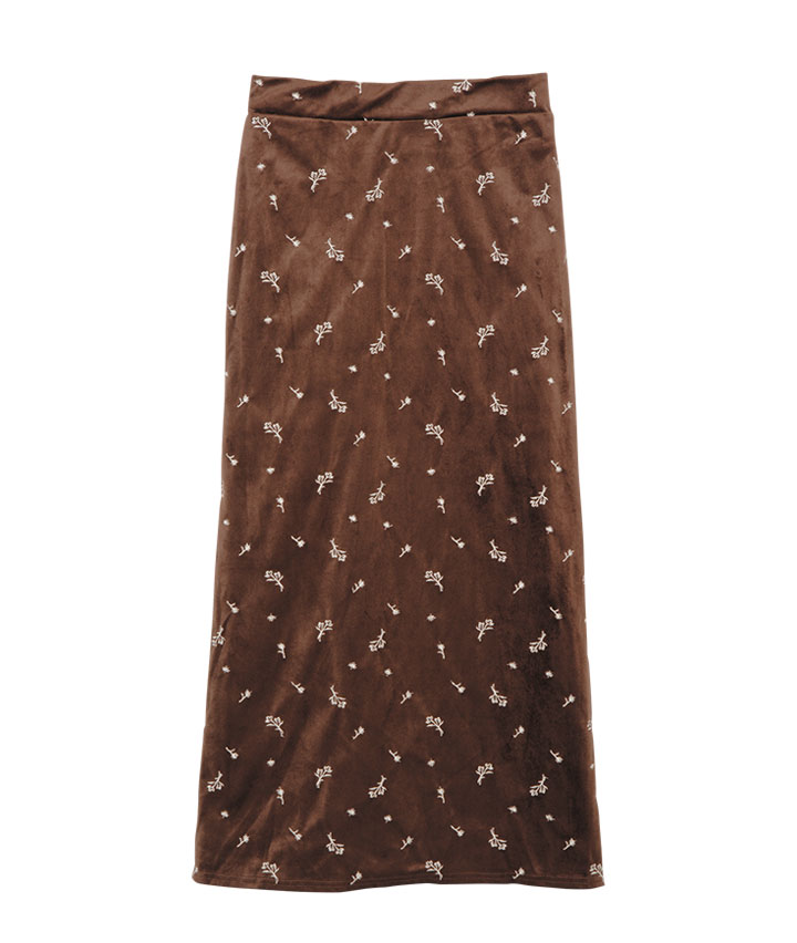 ・小花刺繍がポイントのナロースカート。カジュアルにもキレイ目にも着合わせ出来ます。