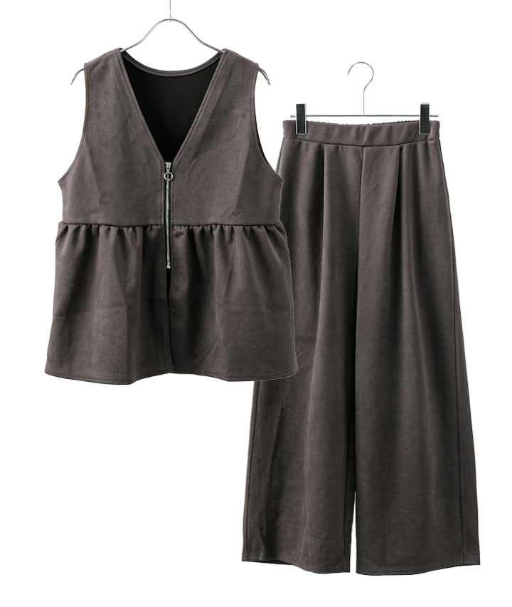・スエード素材のジレZIPセットアップ。単品としても活用できる今季AW着回し力No.1のアイテムです。