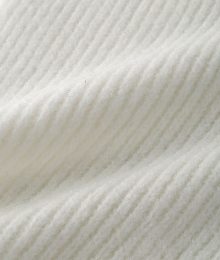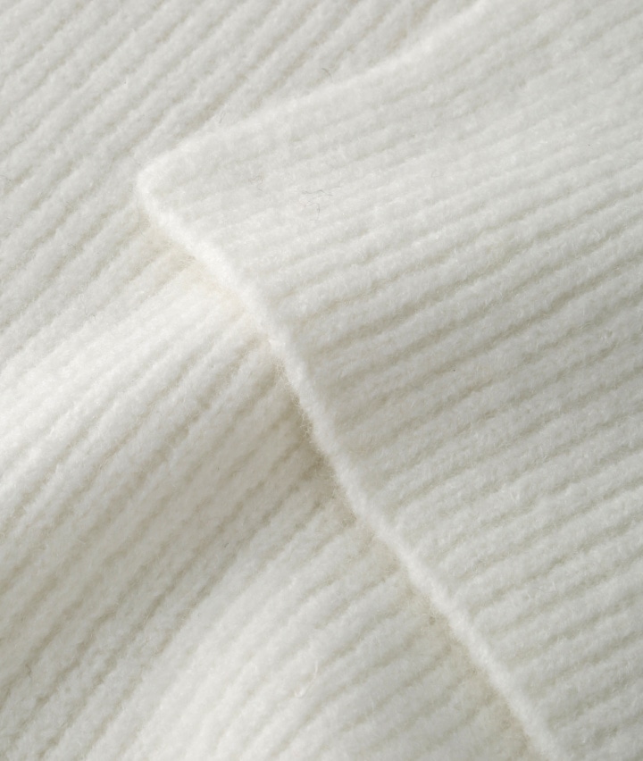 ・糸を引き揃え度目を上げて編んだ、ミドルゲージのマフラーです。もちっとした弾力が特徴で、糸と糸の間に空気を含みあたたかさを逃しません。洗いをかける縮絨という工程で、カシミヤらしいふっくらと柔らかな風合いに仕上げています。程よい肉感で密に編み上げた立体的なリブ編みが、シンプルですっきりとしたデザインです。