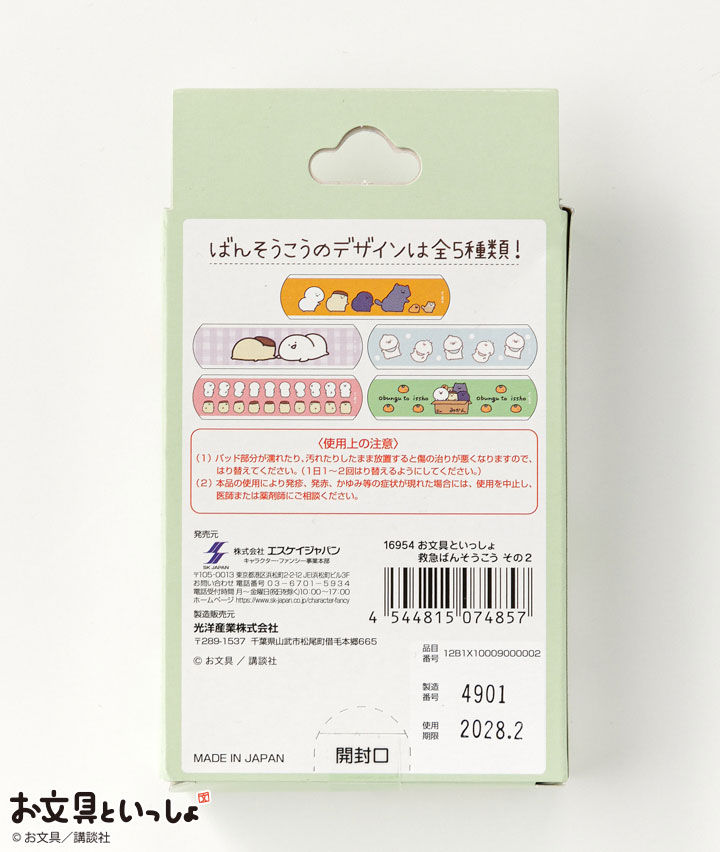・お文具さんたちのゆるゆるな表情に癒されながら傷口を優しく守ってくれます。デザインは5種類で1箱に各4枚入りです♪