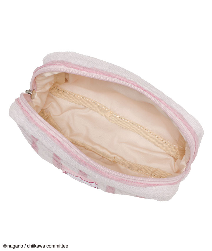 ・時にはチルしてリラックス…。パイル生地を使用した、手触り柔らかなポーチ。内側に仕切りポケットがあり、コスメや小物をしっかり収納可能です。