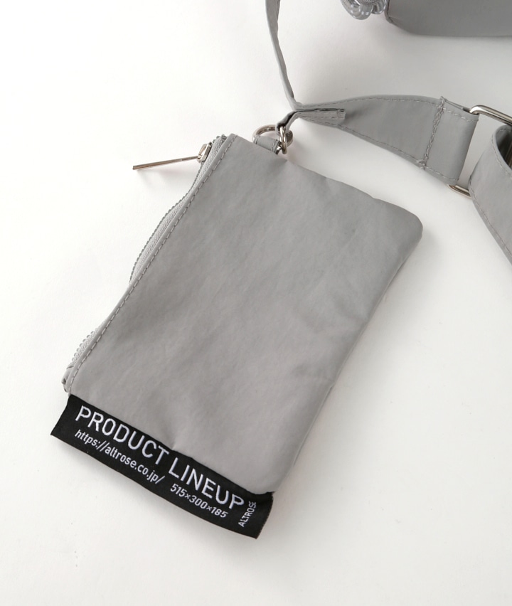 ・取り外しのできる便利なポーチ付ショルダーバッグ。本体は多収納で小銭入れ、スマートフォン、500mlのペットボトルも十分に入る大きさになっています。