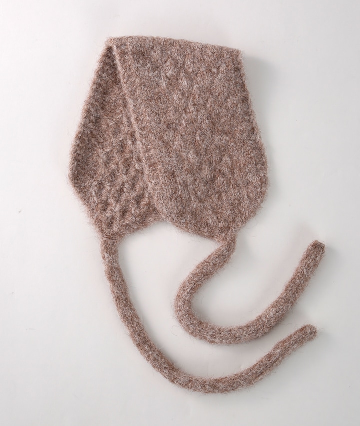 ・バブーシュカのようなスタイルを取り入れたイヤーマフです。温かみのあるニット編みです。