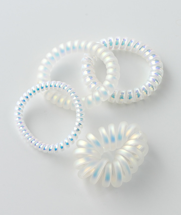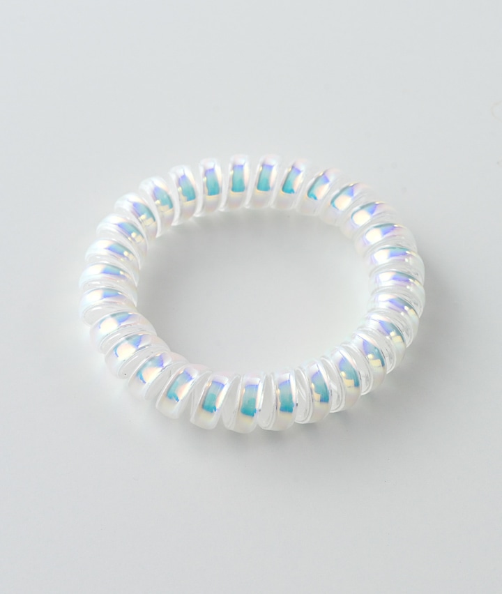 ・キラキラと輝くオーロラカラーが美しいヘアゴムです。光の加減で様々な表情を見せるので、普段使いはもちろん、ちょっとしたお出かけにもぴったり。太さやサイズの違うゴムがセットになっているので、シーンやヘアスタイルに合わせて使い分けられます。
