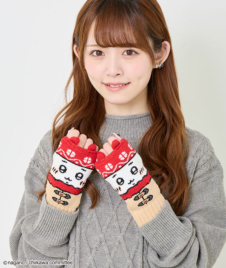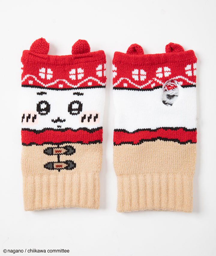 ・ちいかわの暖かアームウォーマーです。可愛いフェイス柄が目を引きます。