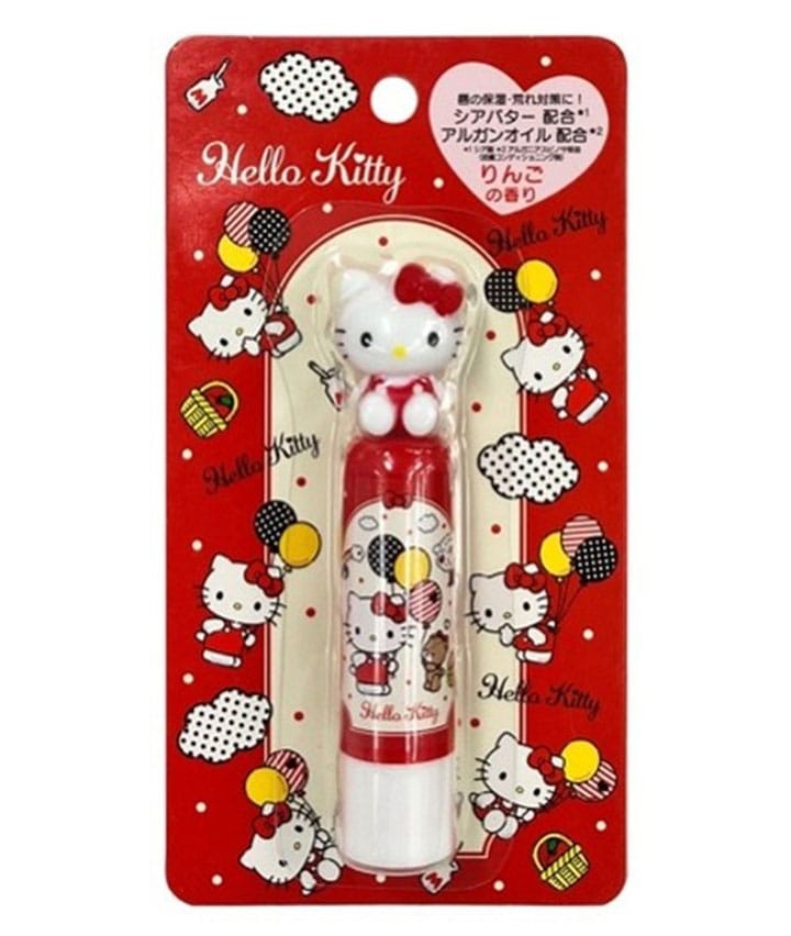 ・唇の荒れ・保湿対策に!おすわりした姿がとってもキュートなハローキティのリップクリーム。立体型マスコットがかわいいりんごフレーバー
