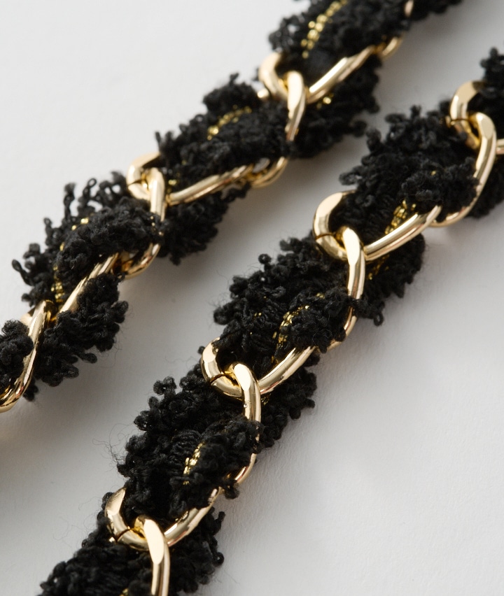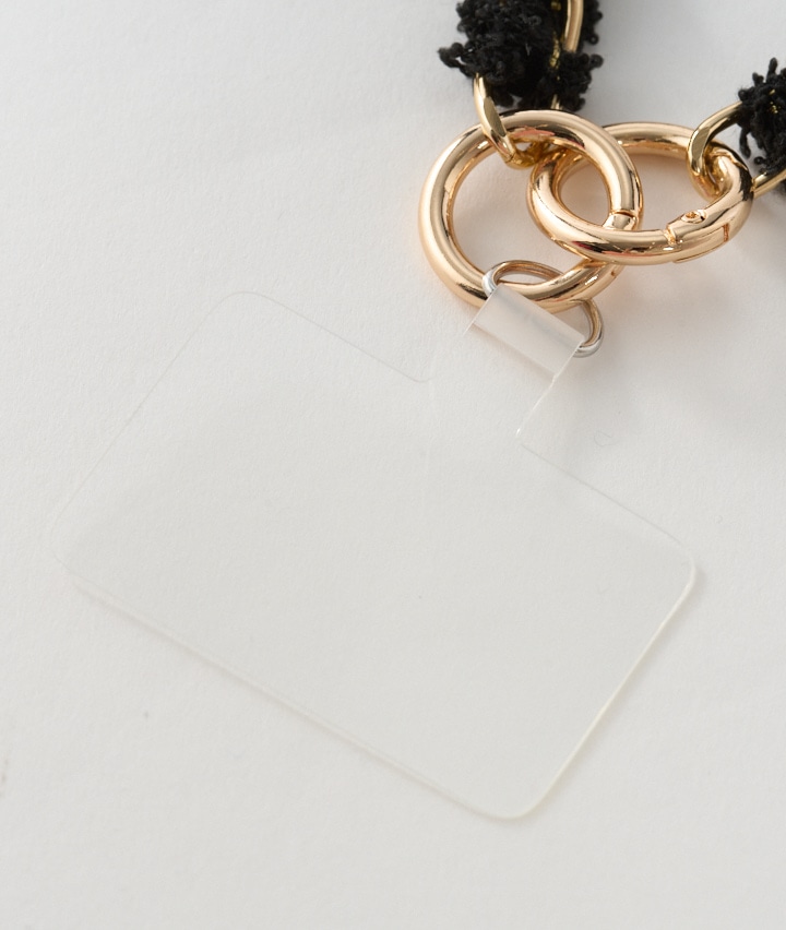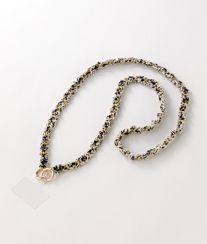 ・トレンドのツイードをチェーンと組み合わせたスマホストラップです