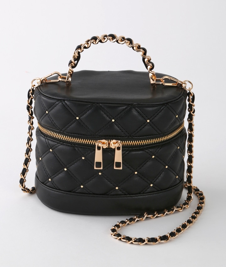 ・上品なデザインで、大人でも持ちやすい、きれいめバニティバッグです。チェーン使いのハンドルやショルダー部分で高見え効果◎