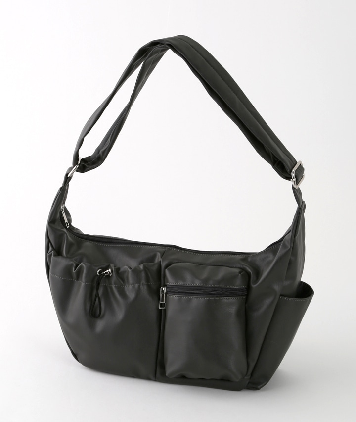 ポケット付き合皮デザインショルダーバッグ