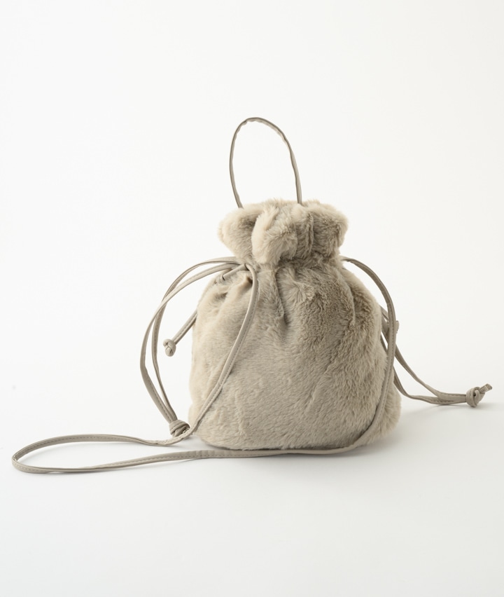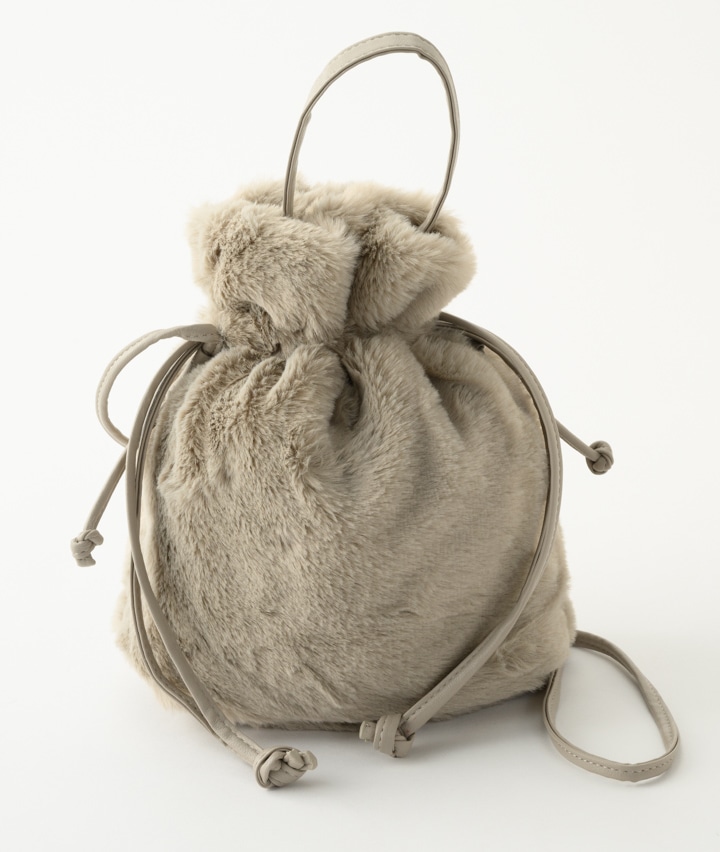 フェイクファー巾着バッグ