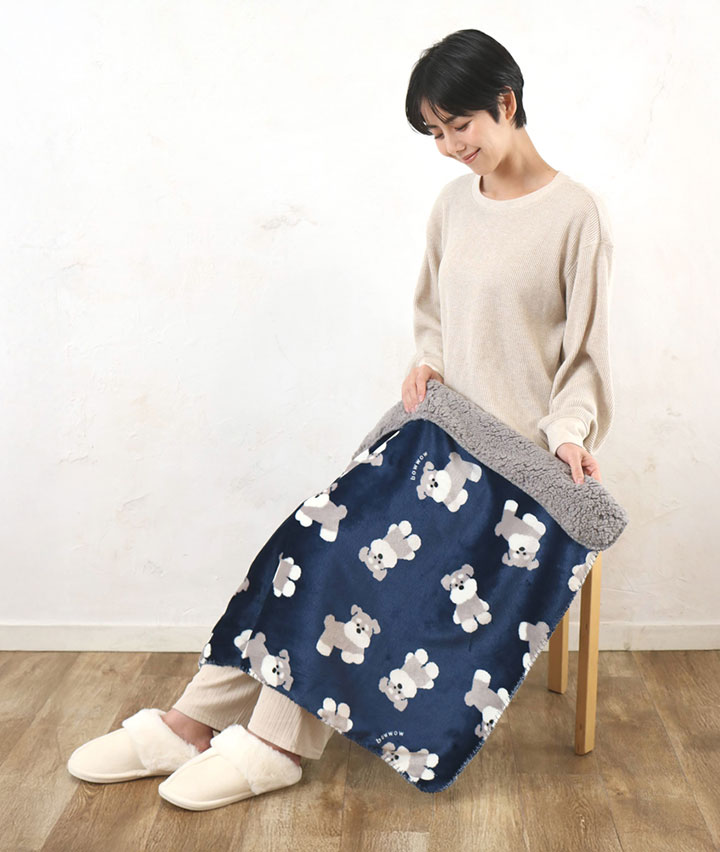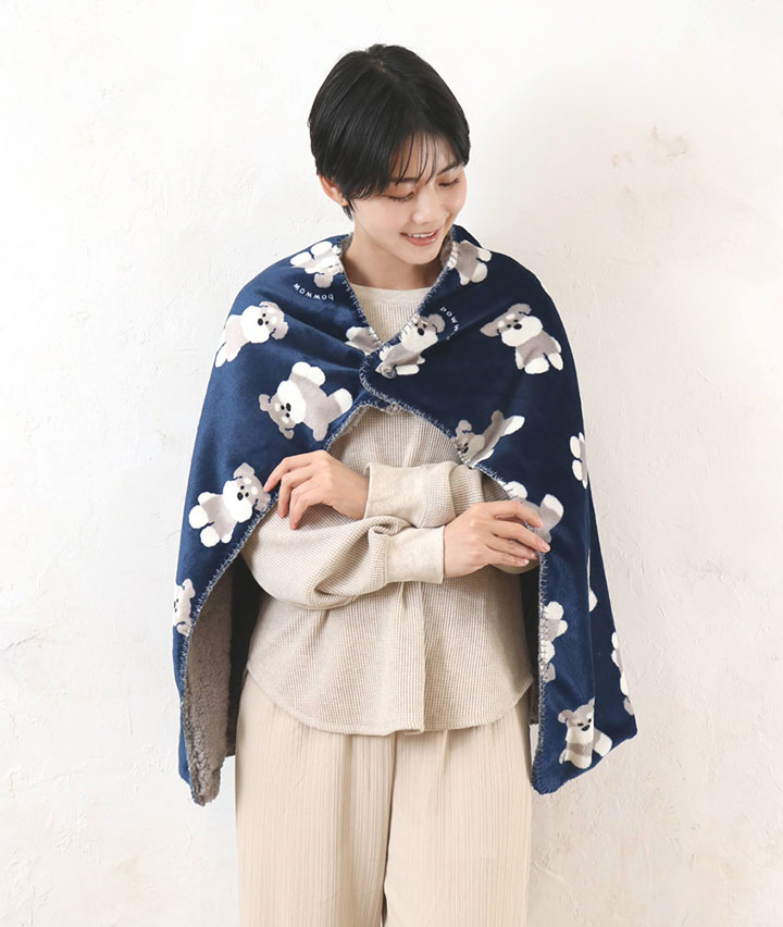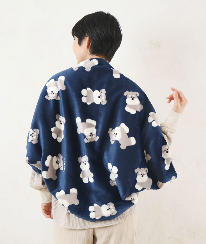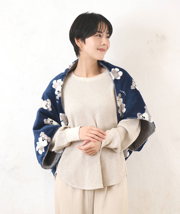 ・大人気のアニマル柄3WAYひざ掛け、ふんわりなめらかなフランネル生地と、あたたかいシープボアの心地よさ。ブランケット・ポンチョ・ボレロの3通りに使用できます。