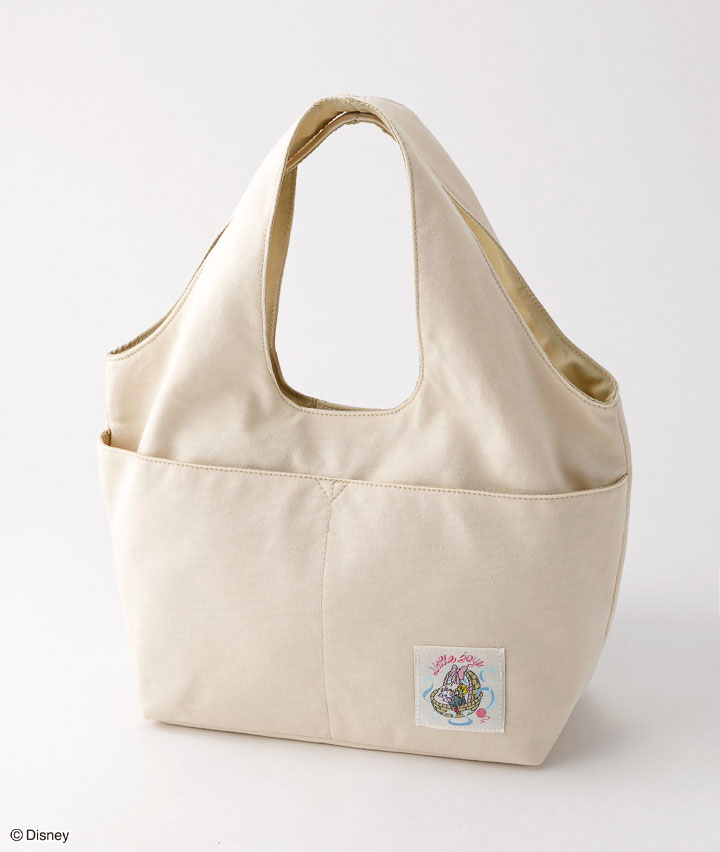 ・ディズニークラシックス名作『おしゃれキャット』のマリーちゃんのワッペンが施されたくり手のミニトートバッグです。ちょっとしたお出かけにぴったりな持ちやすいサイズ感のアイテムです。