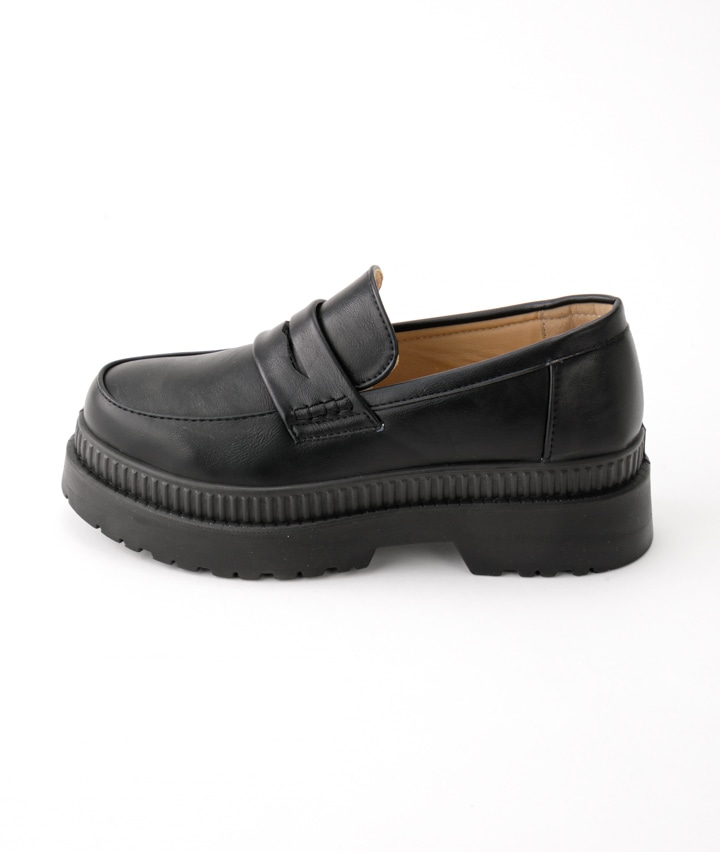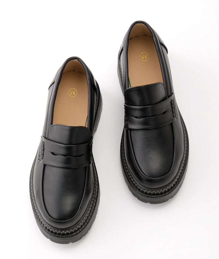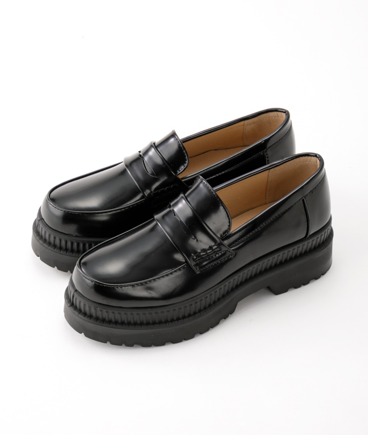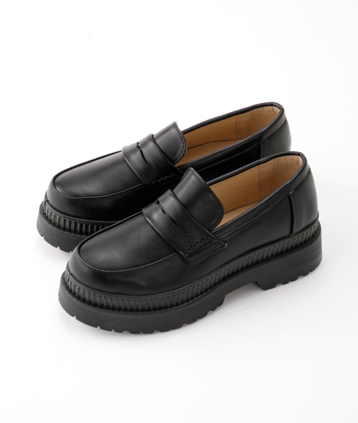 ・足元にボリューム感をだせる定番の厚底コインローファーシュ―ズ。トラッドなスタイルやカジュアルダウンな装いにも最適です。