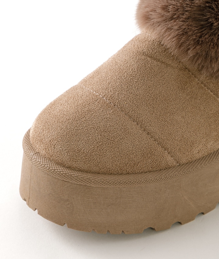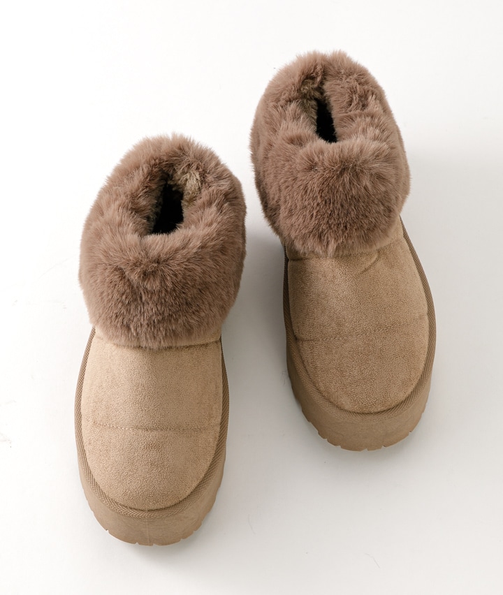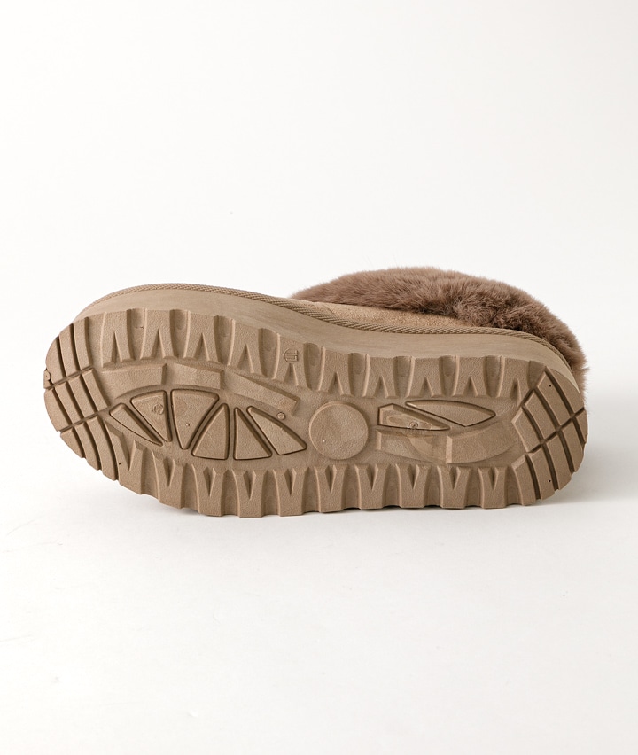 ・スタイルアップが叶うトレンドの厚底サボサンダル♪ボリューム感のあるエコファー使いが足元のアクセントになります。
