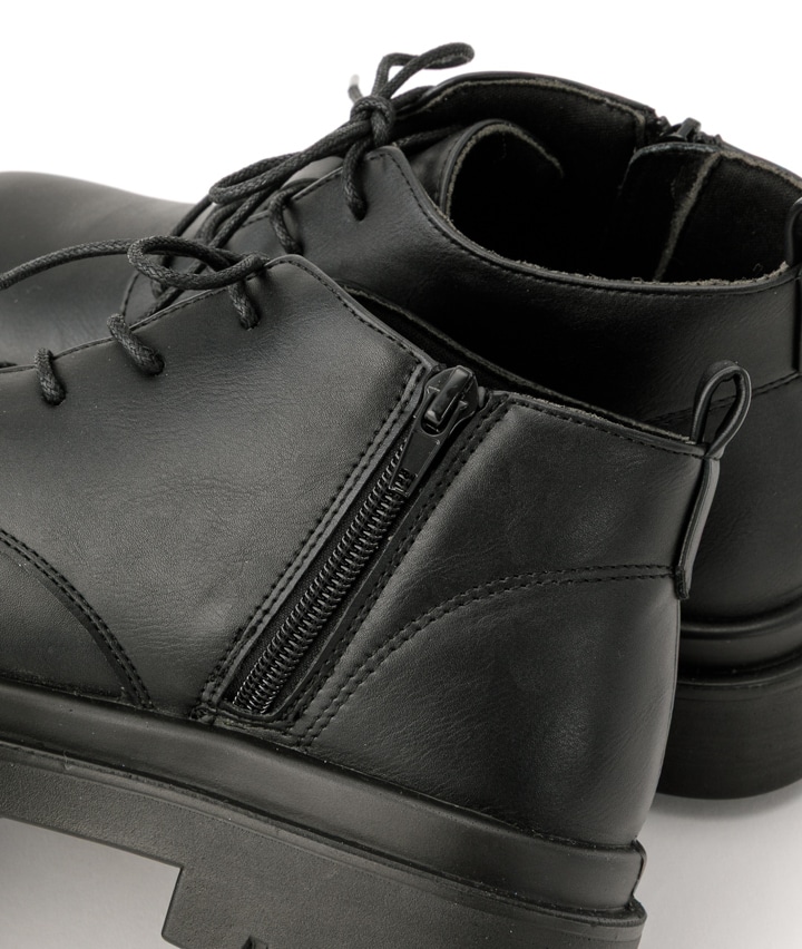 ・ブーツライクで春先まで使いまわしのきく定番のレースアップシュ―ズ。ライトボリュームソールで履きやすく、カジュアルコーデのアクセントに♪