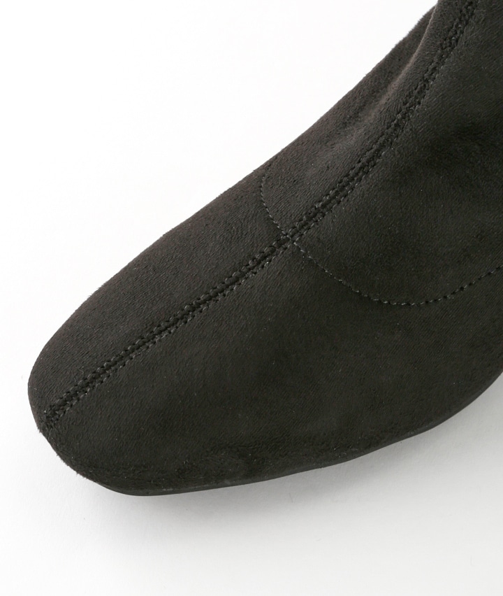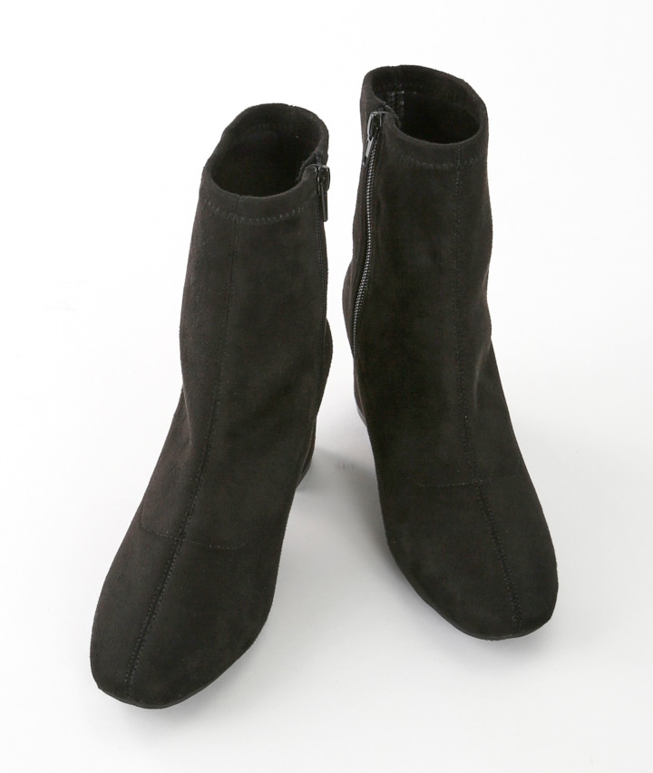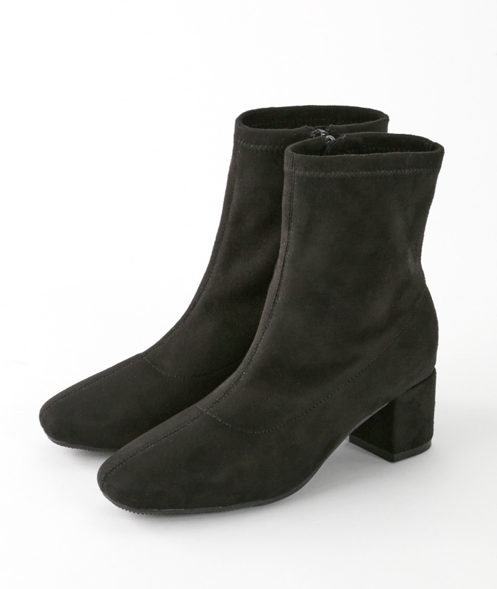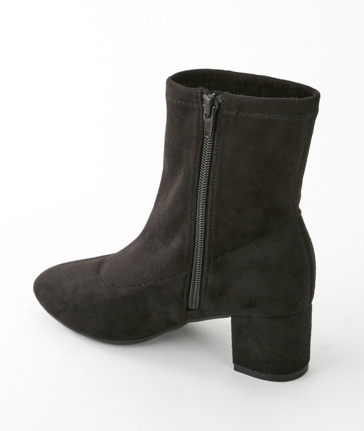 ・シーズンらしさを演出できるスウェード調素材のショートブーツ。エレガンスな装いに最適です。