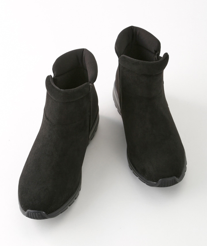 ・片足重量約220g(Mサイズ)の軽量設計に、急な雨でも困らない撥水加工を施した一推しブーツ。ウェッジヒールで安定して程よい足長効果もあり。手を使わずサクッと履ける嬉しい仕様♪