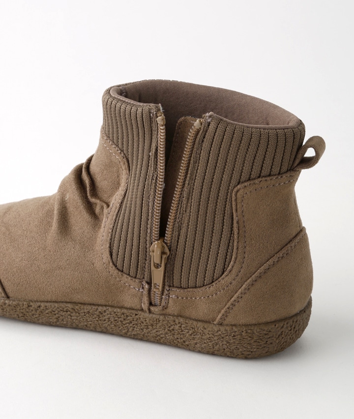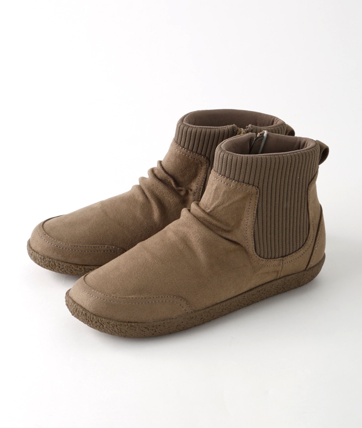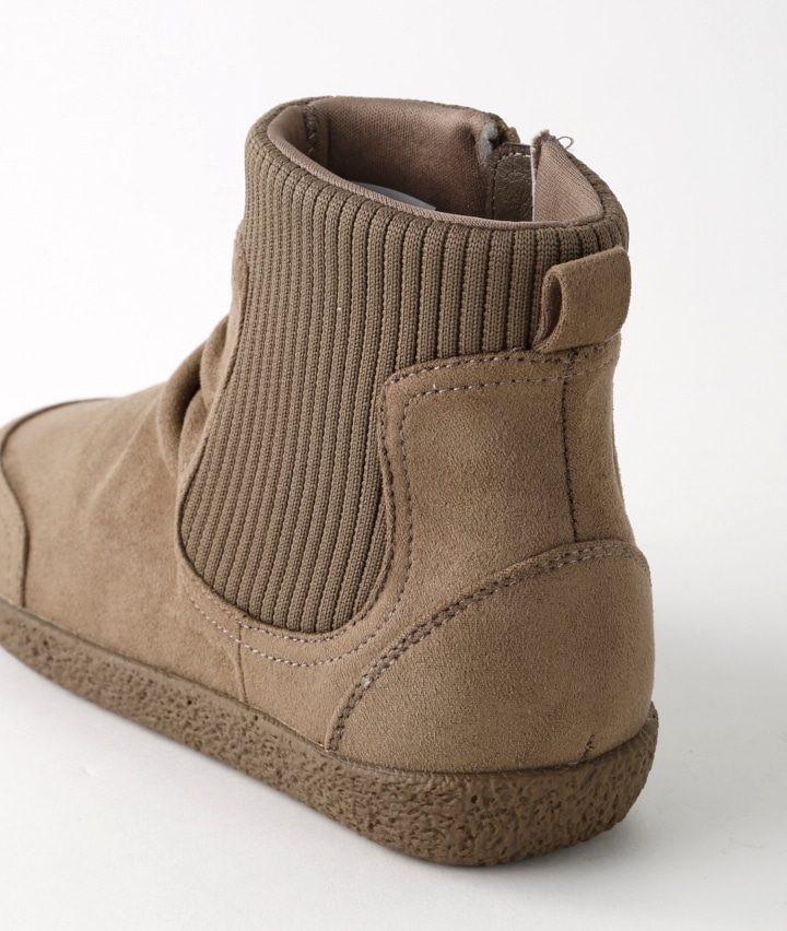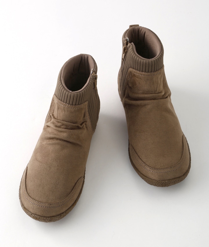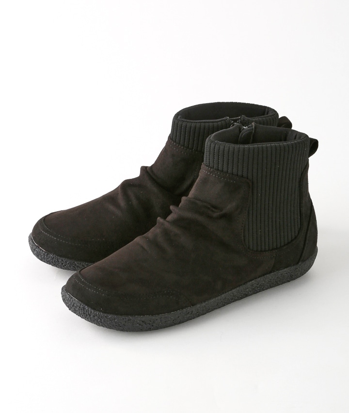 ・伸縮性のあるニット素材を履き口に使用したカジュアルブーツ♪足首周りが自由に動けて、歩きやすいアイテムです。