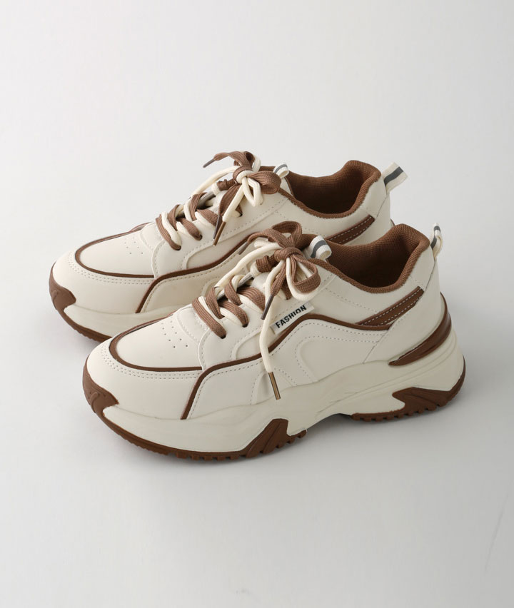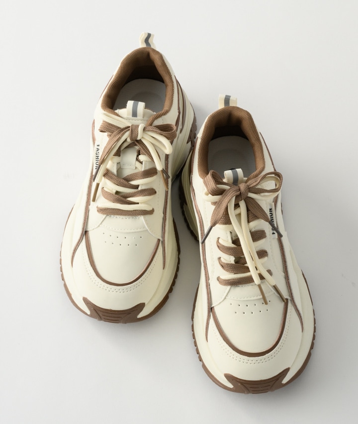 ・配色デザインが足元のアクセントになる厚底スニーカー♪ラクに履けて、スタイルアップできるのも魅力的。