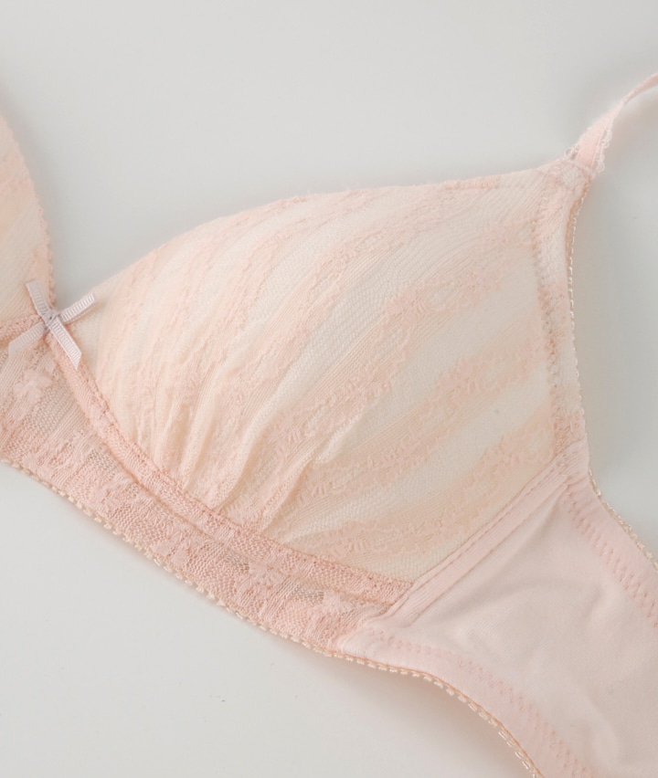 (ローズオイル加工)(コットンMIX)ふわふわレースノンワイヤーブラジャー