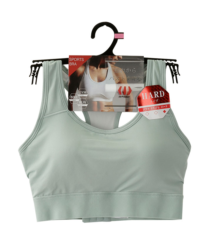 ・カップ内蔵と背中のパワーネットが運動時のバストの揺れをしっかりサポート。後ろは3段ホック付きで着脱ラクラク。