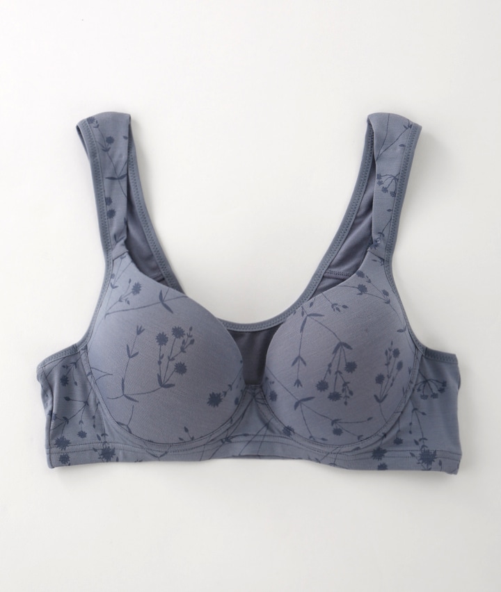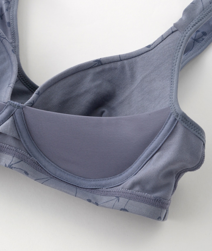・調温素材が衣服内を快適な温度にコントロールしてくれるので、冷房対策や季節の変わり目におすすめ。ナノファイン加工を施し、ニオイ菌99.9%カット。カップ裏パネルがきれいなバストシルエットをメイク。