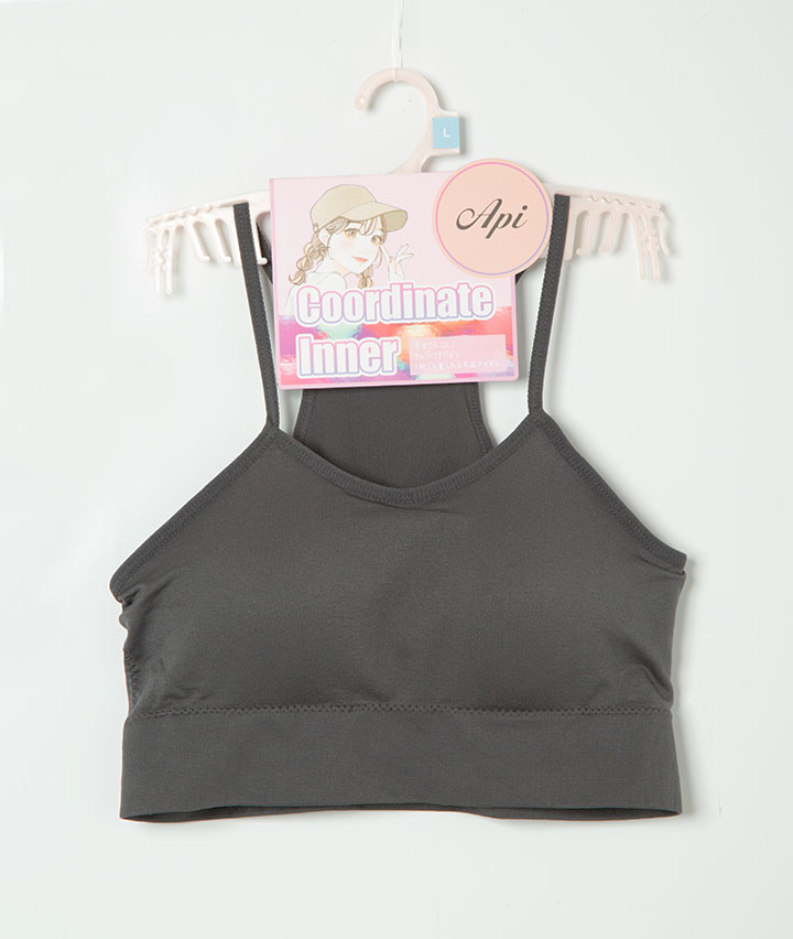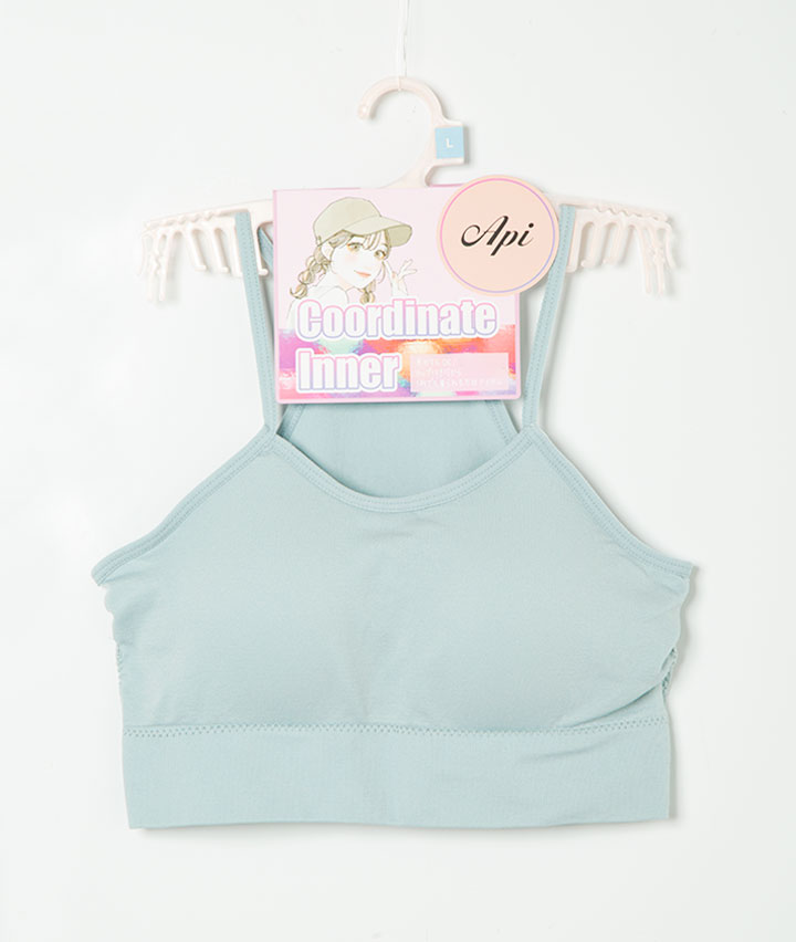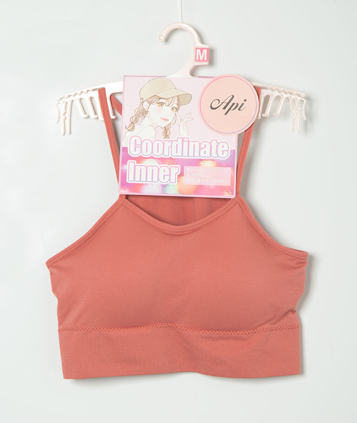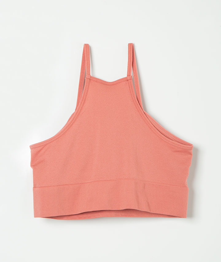 ・見せても着られるコーディネイトインナーシリーズ!ホルターネック風の肩紐がポイントのハーフトップ。成型編みですっきりフィットしてスタイルアップ。取り外し可能パッド付で1枚でも着用OK。パーカやロンTと合わせて大人クールなレイヤードコーデがオススメ。
