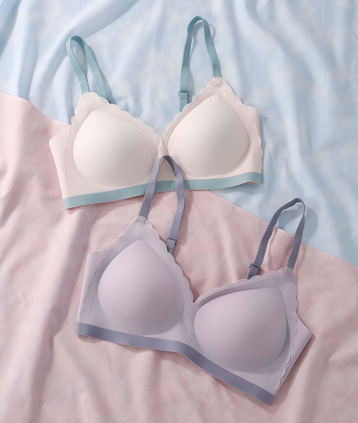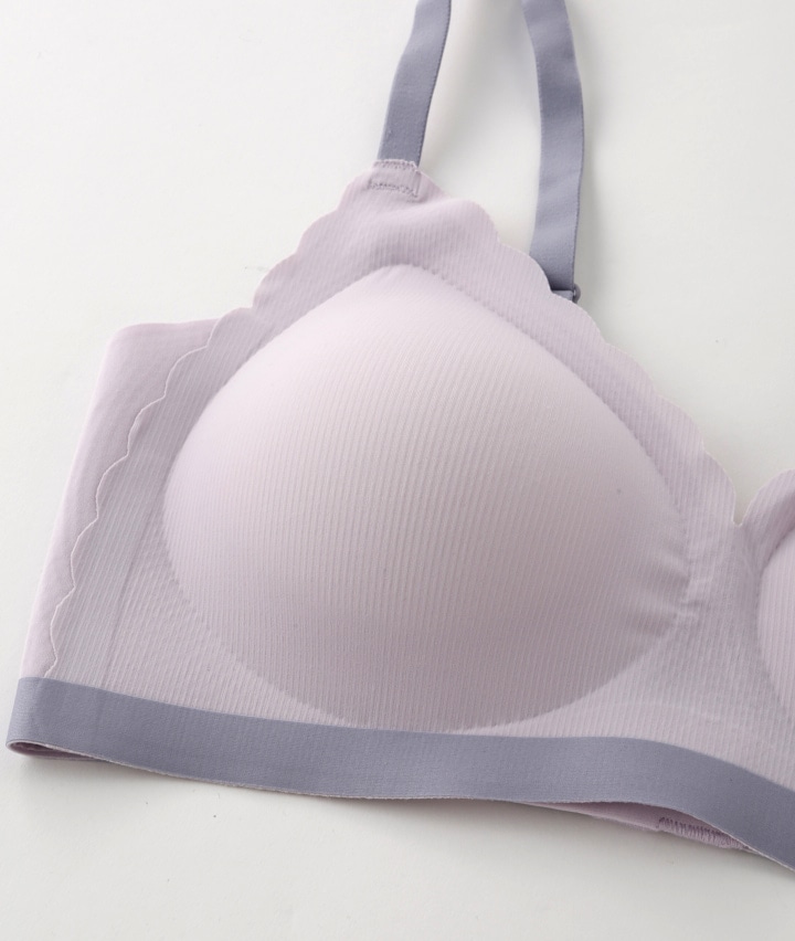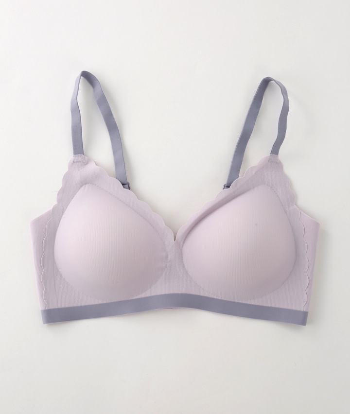 (ピタっと革命)バイカラースカラップカットシームレスノンワイヤーブラジャー