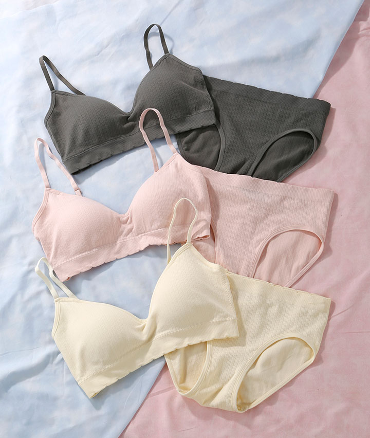 (今っぽブラセット)(成型編み)リブハーフトップ&ショーツセット