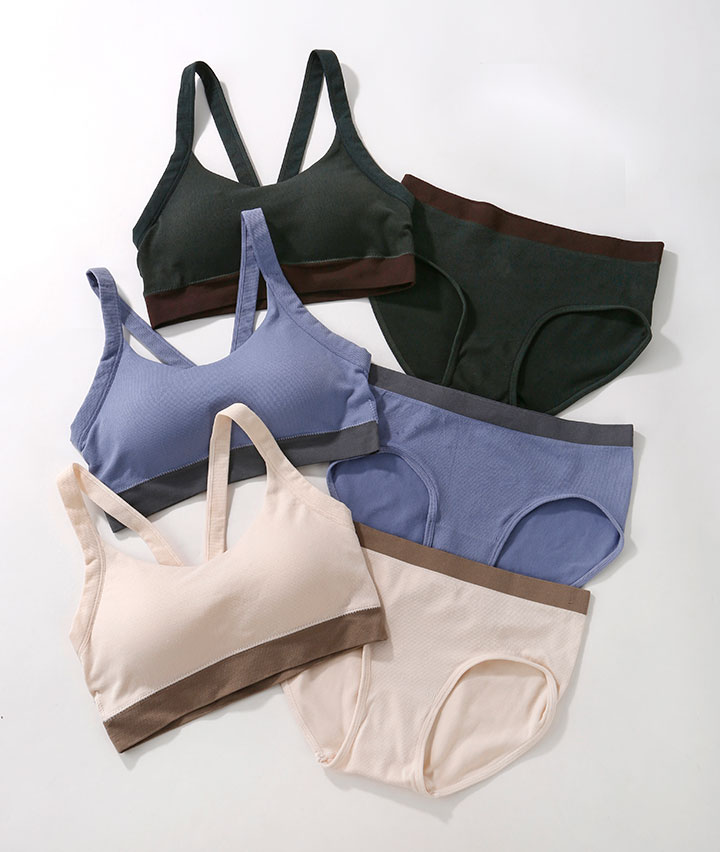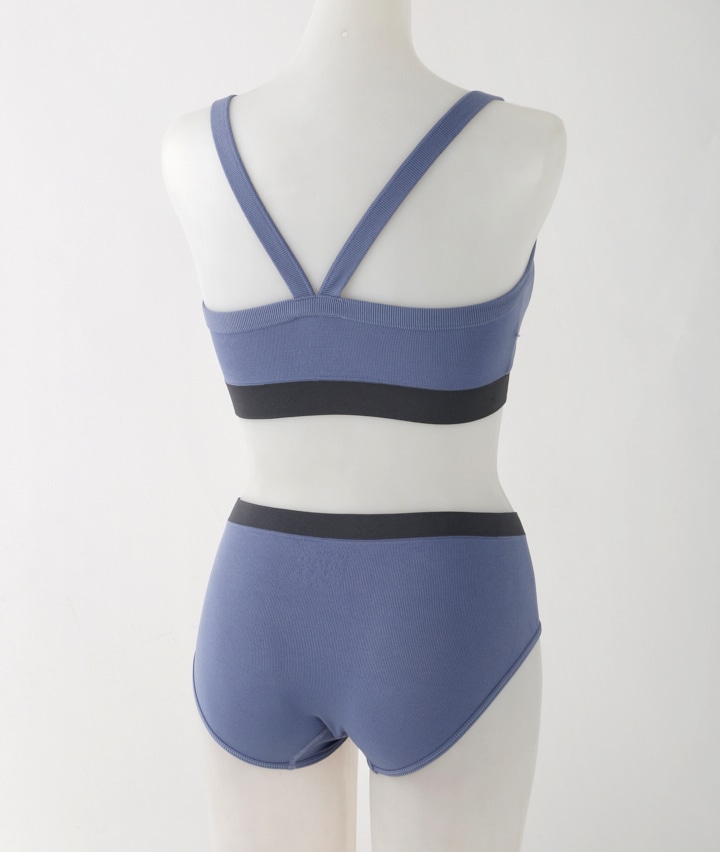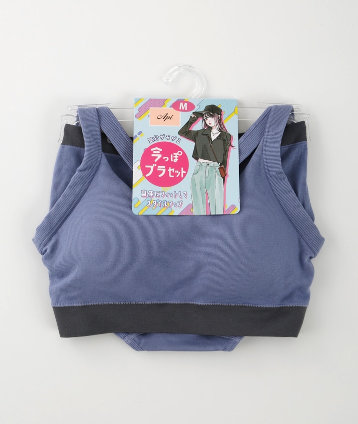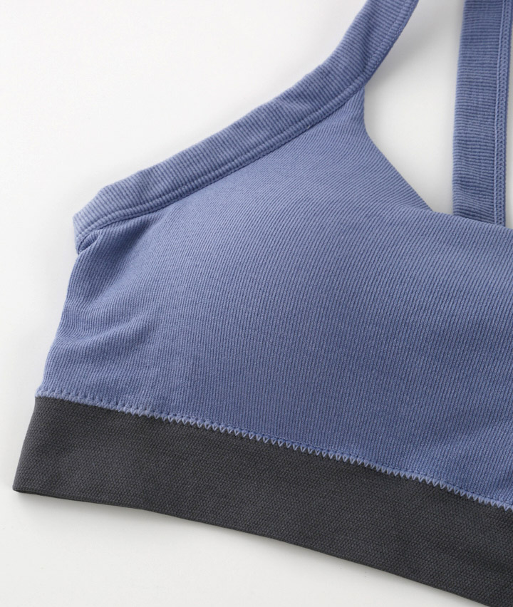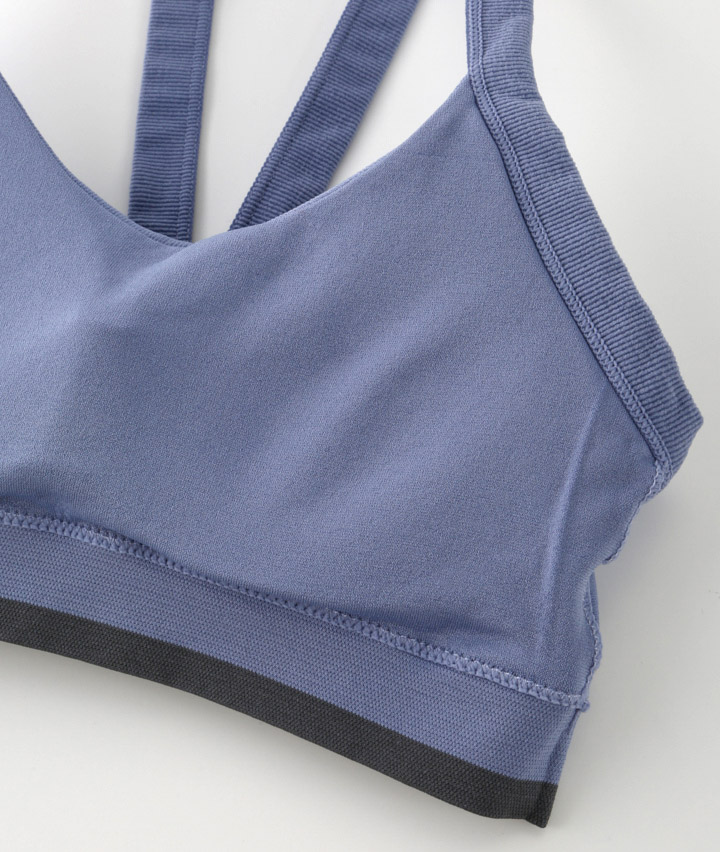 ・カラダに程よくフィットしてスタイルアップできる成型編み。左右一体の下厚雫型パッド入りでデコルテふっくらメイク&ズレにくくデイリー使いしやすい仕様。スポーティなバイカラー&背中ストラップが見えてもかわいいデザイン。