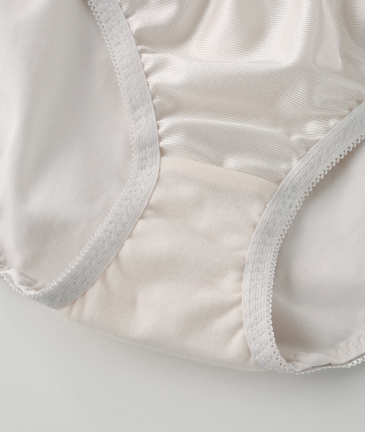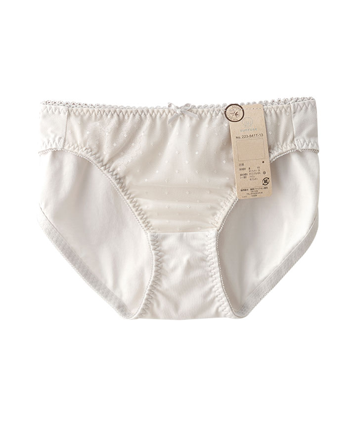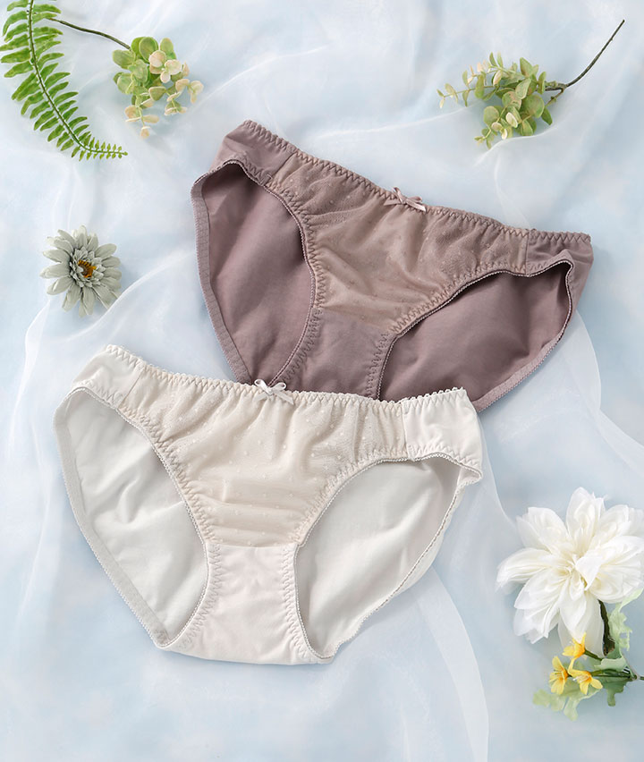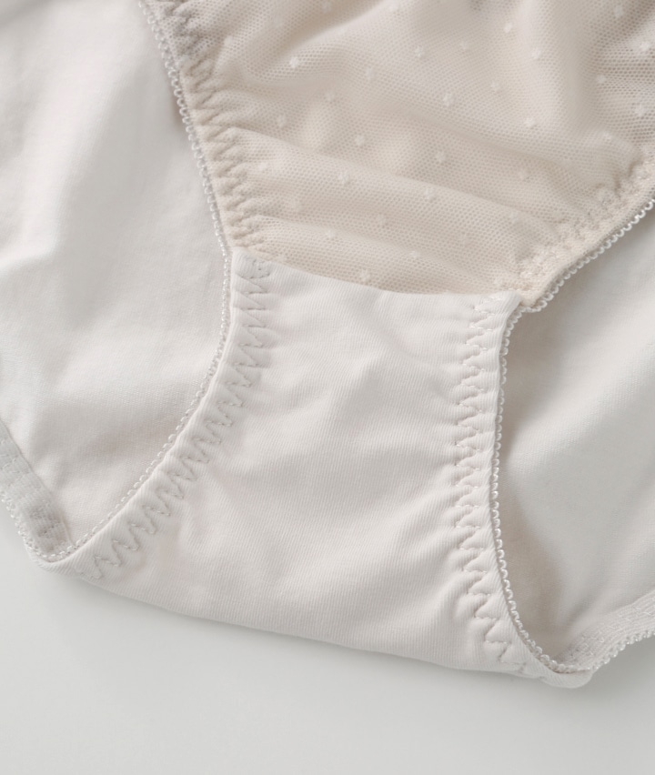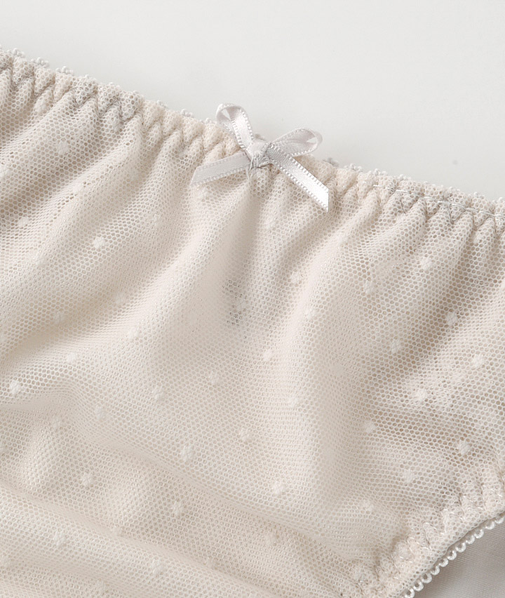 ・ドットが可愛いショーツ。シアバターオイル加工でマチ部分潤い保湿&コットンMIX素材でお肌に優しいはきごこち。