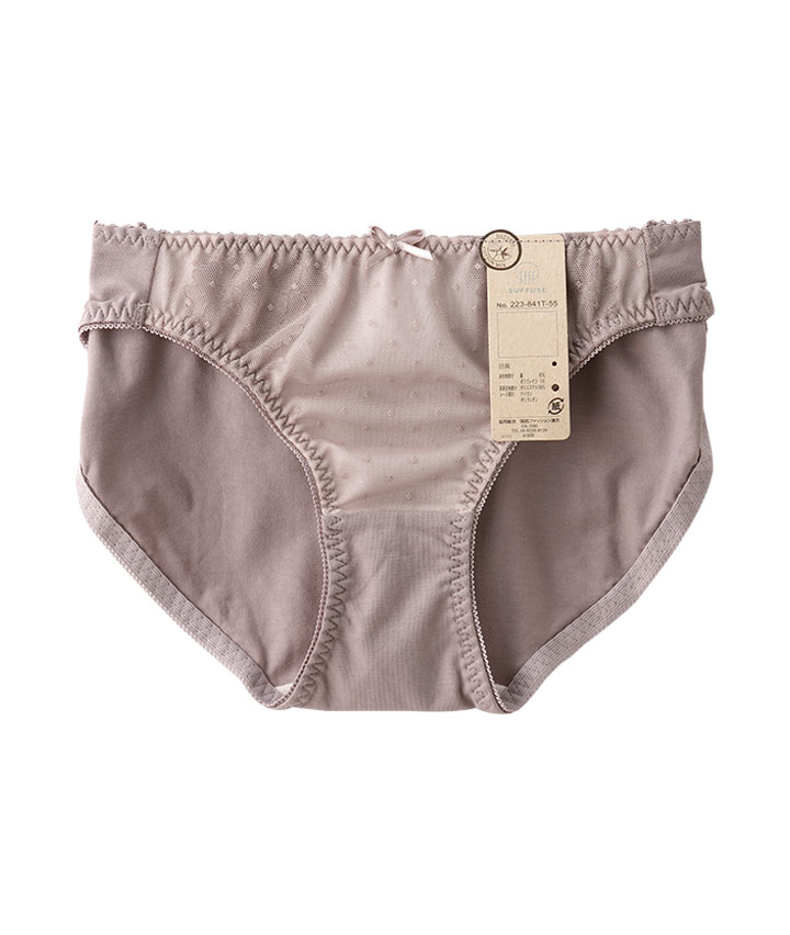 ・ドットが可愛いショーツ。シアバターオイル加工でマチ部分潤い保湿&コットンMIX素材でお肌に優しいはきごこち。