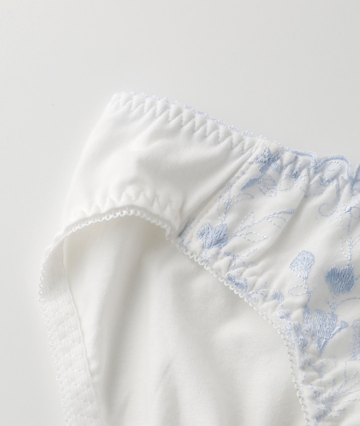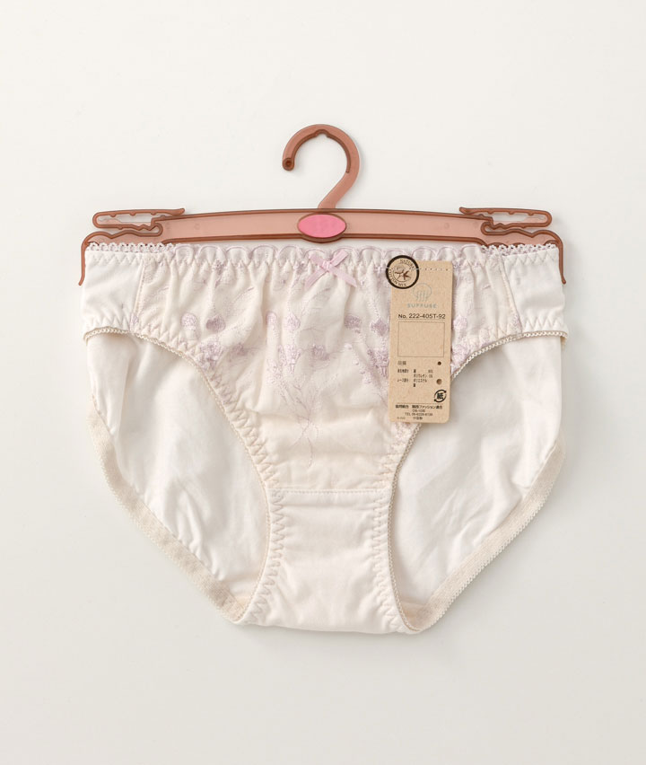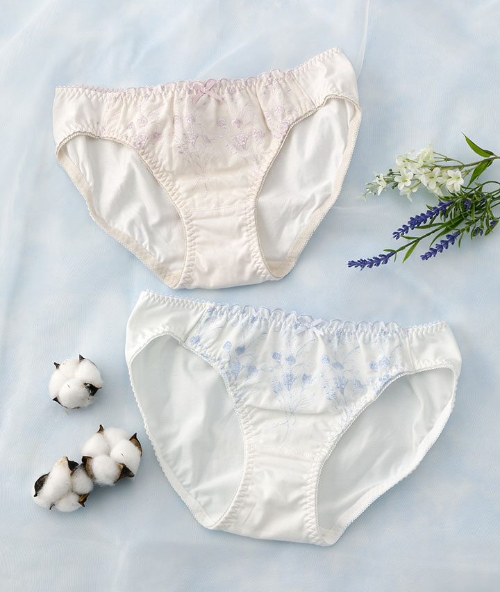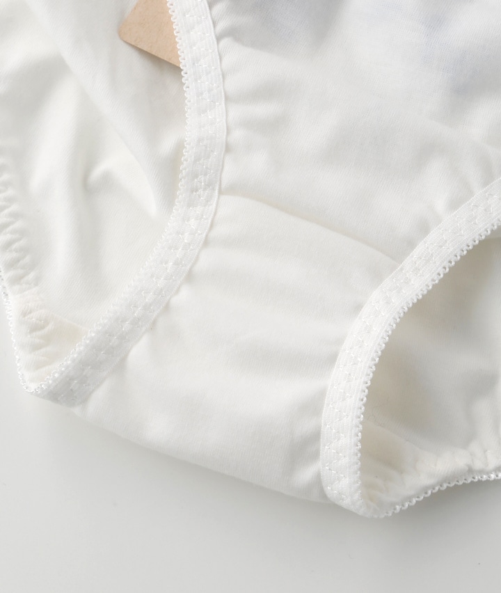 ・コットンレースがナチュラル可愛いショーツ。マチ部分アルガンオイル加工&コットンMIX素材でお肌に優しいはきごこち。