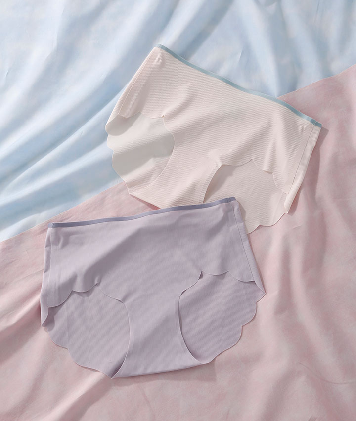(ピタっと革命)バイカラースカラップカットシームレスショーツ