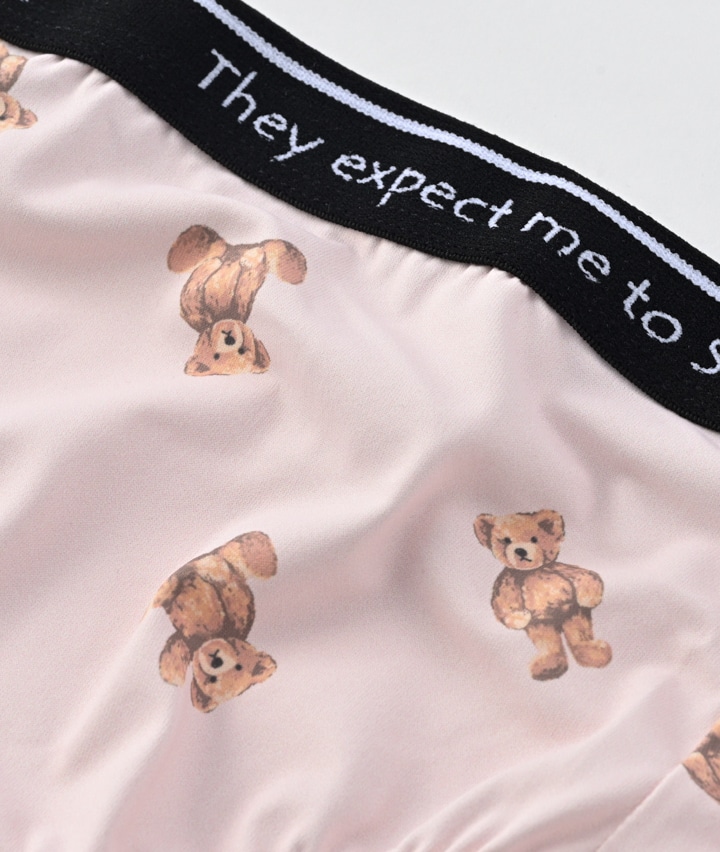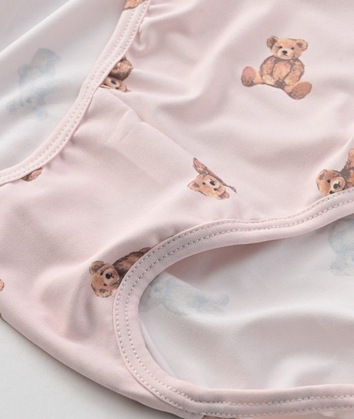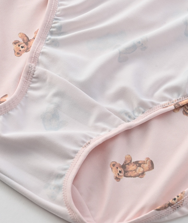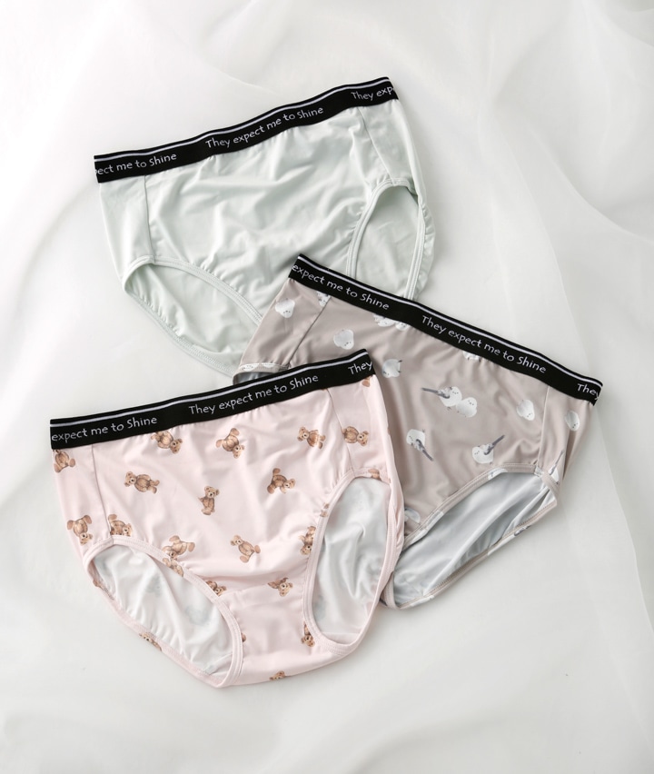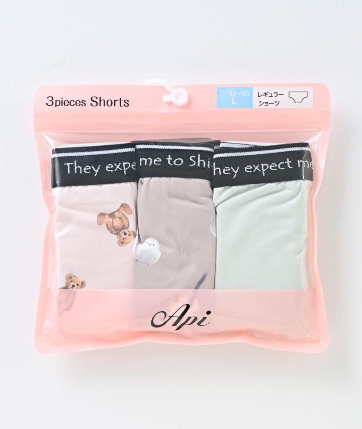 ・シマエナガ柄・くま柄・無地のキュートな3枚組レギュラーショーツ。ロゴ入りウエストゴムがアクセント。