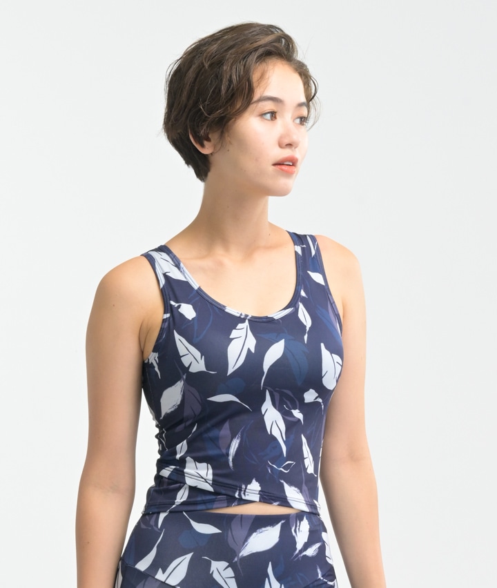 ・内蔵カップと背中のパワーネットが運動時のバストの揺れをしっかりサポート。クロップド丈でおしゃれにコーディネートもおすすめ。