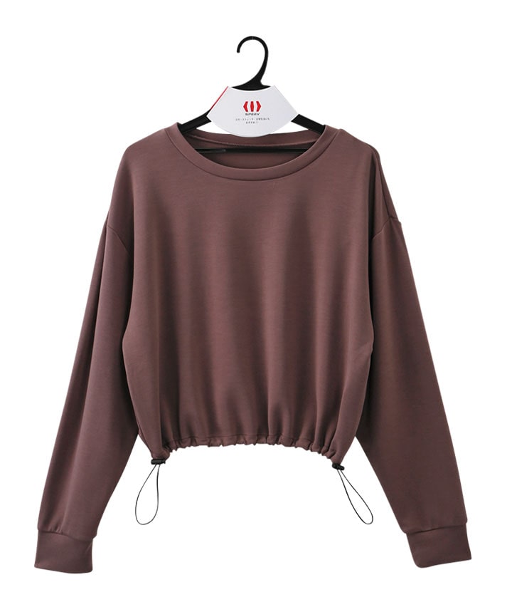 ・空気をまとうような軽くてなめらかな着心地の長袖Tシャツ。クロップド丈+ウェストのスピンドルがポイント。同素材のボトムと合わせてスポーティな空港コーデ風の着こなしがおすすめ。運動時だけでなく普段使いにも◎