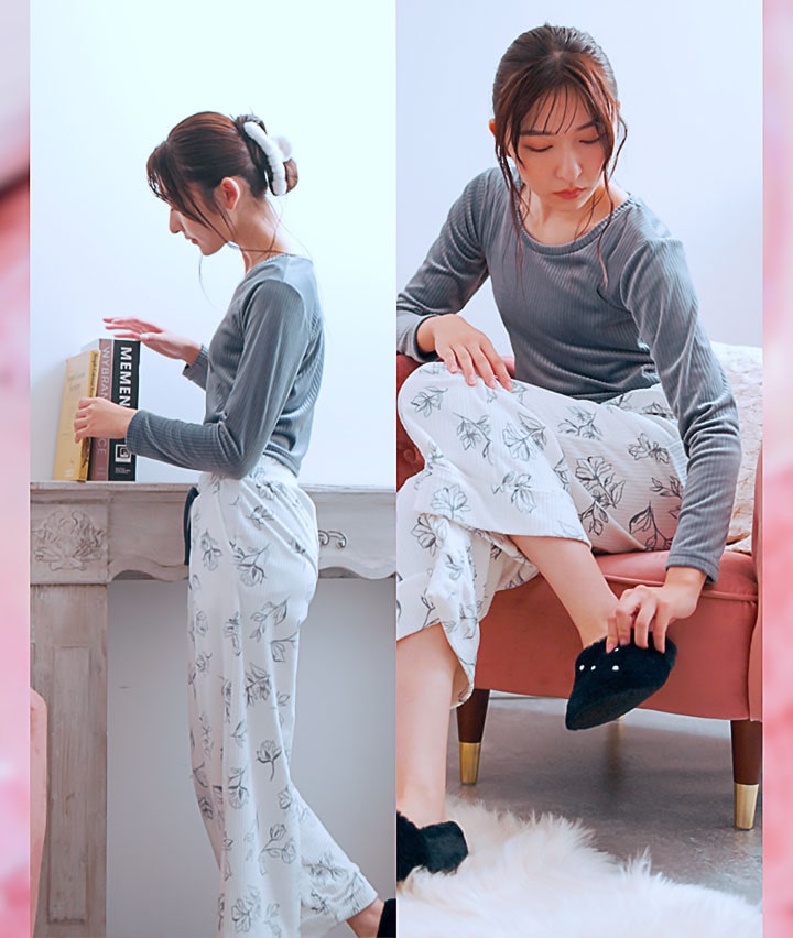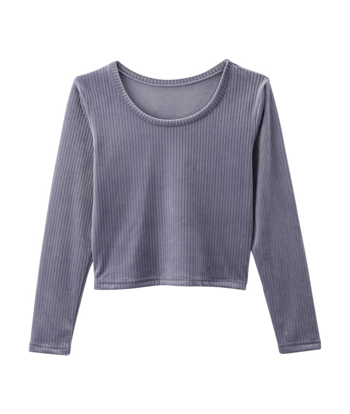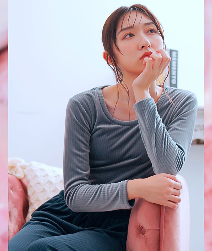 ・クロップド丈のコンパクトなシルエットが今っぽいルームウェア。やみつきタッチのふわとろベロア生地でずっと触れていたい心地よさ♪同シリーズのロングパンツとコーディネイトするのがおすすめ。