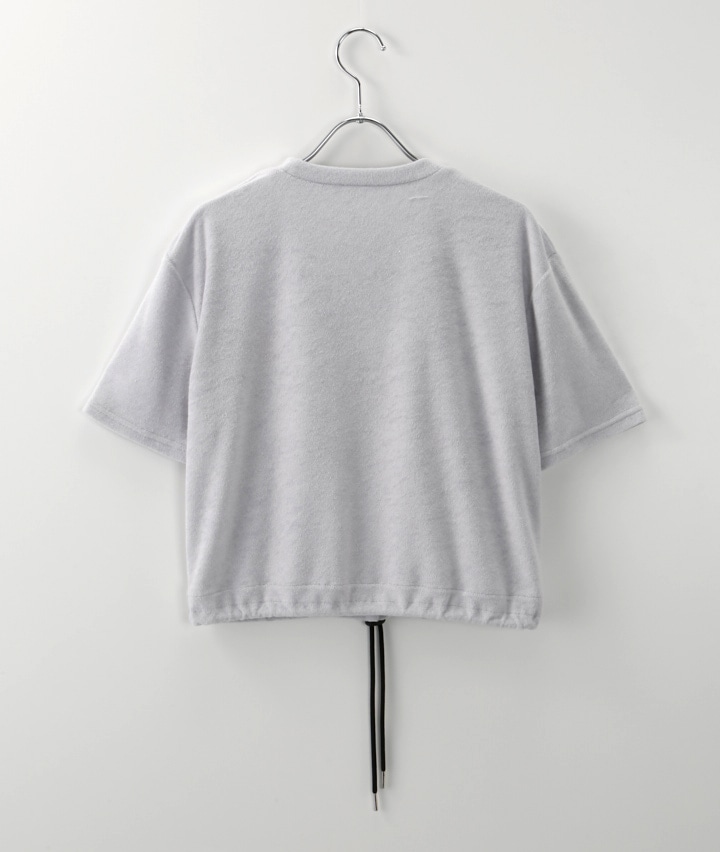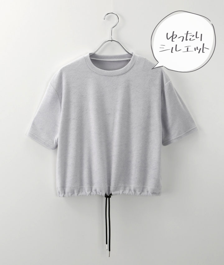・レーヨン混のふんわりなめらかなパイル素材を使用したTシャツです。ゆったりシルエットで締め付けずにラクにフィット。裾部分スピンドルコード付で好みの丈感に調整可能。ヨガやエクササイズ、ルームウェアなど幅広いシーンで活躍。同素材のショートパンツとセットアップでの着こなしがおすすめ♪