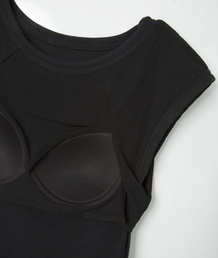 (技ありブラトップ)綿混リブブラトップスリーブレス