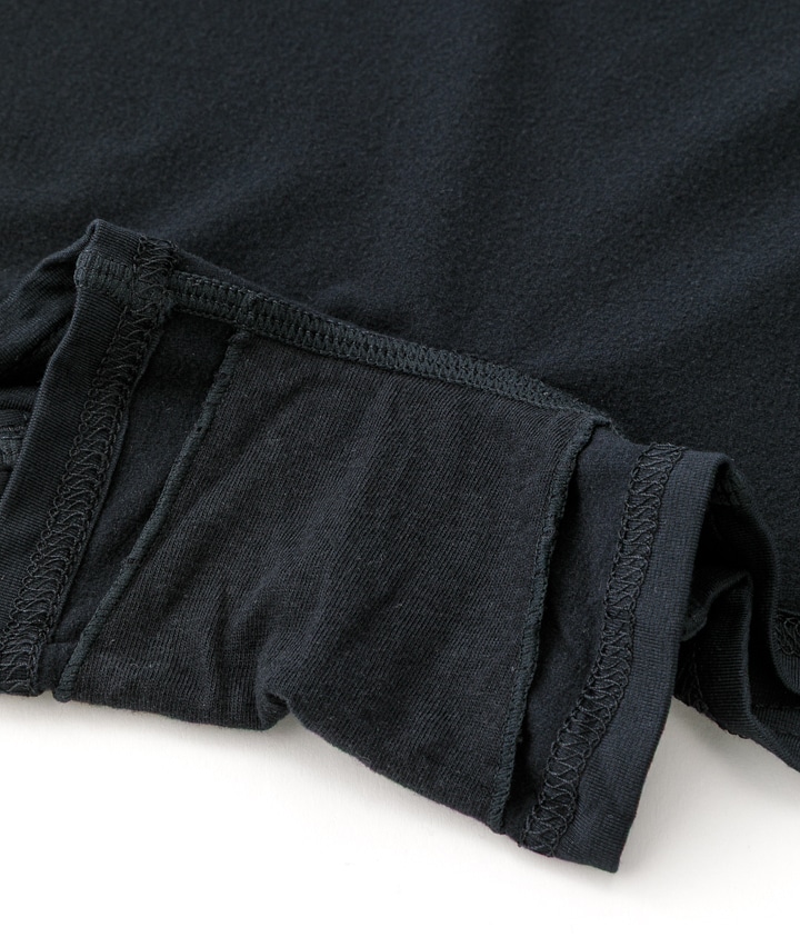 ・遠赤外線加工のなめらかな裏起毛素材。お腹部分を2重設計ですっぽり包んで冷えから身体を守って整えます。