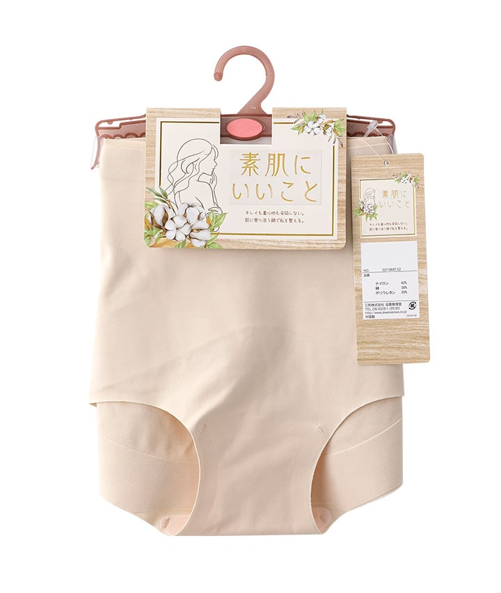 ・キレイも着心地も妥協しない。大人女子のためのメンテナンスインナー。縫い目の少ない綿混生地使用で肌触りが良く、アウターにも響きにくい仕様。ウエスト~お腹、ヒップのパネルで引き締めてスタイルアップ!